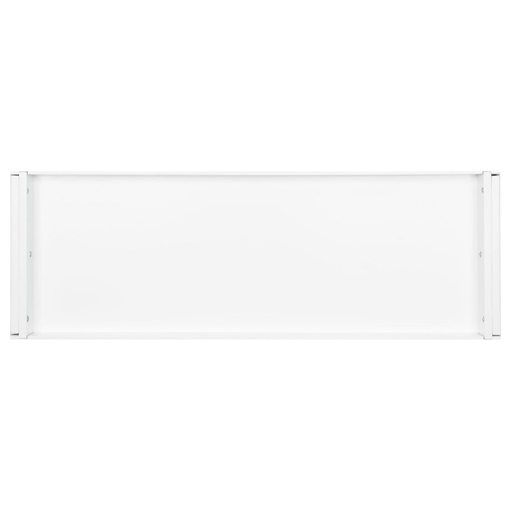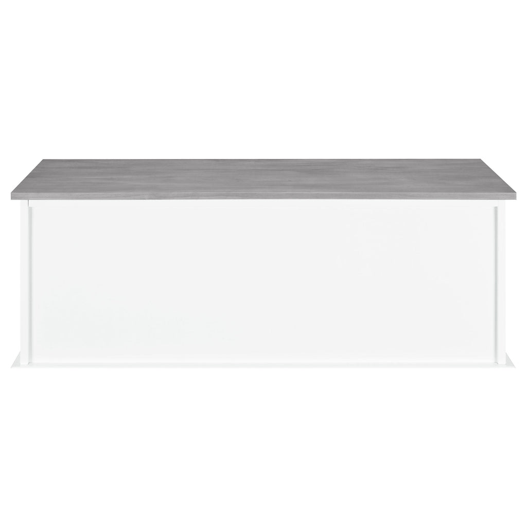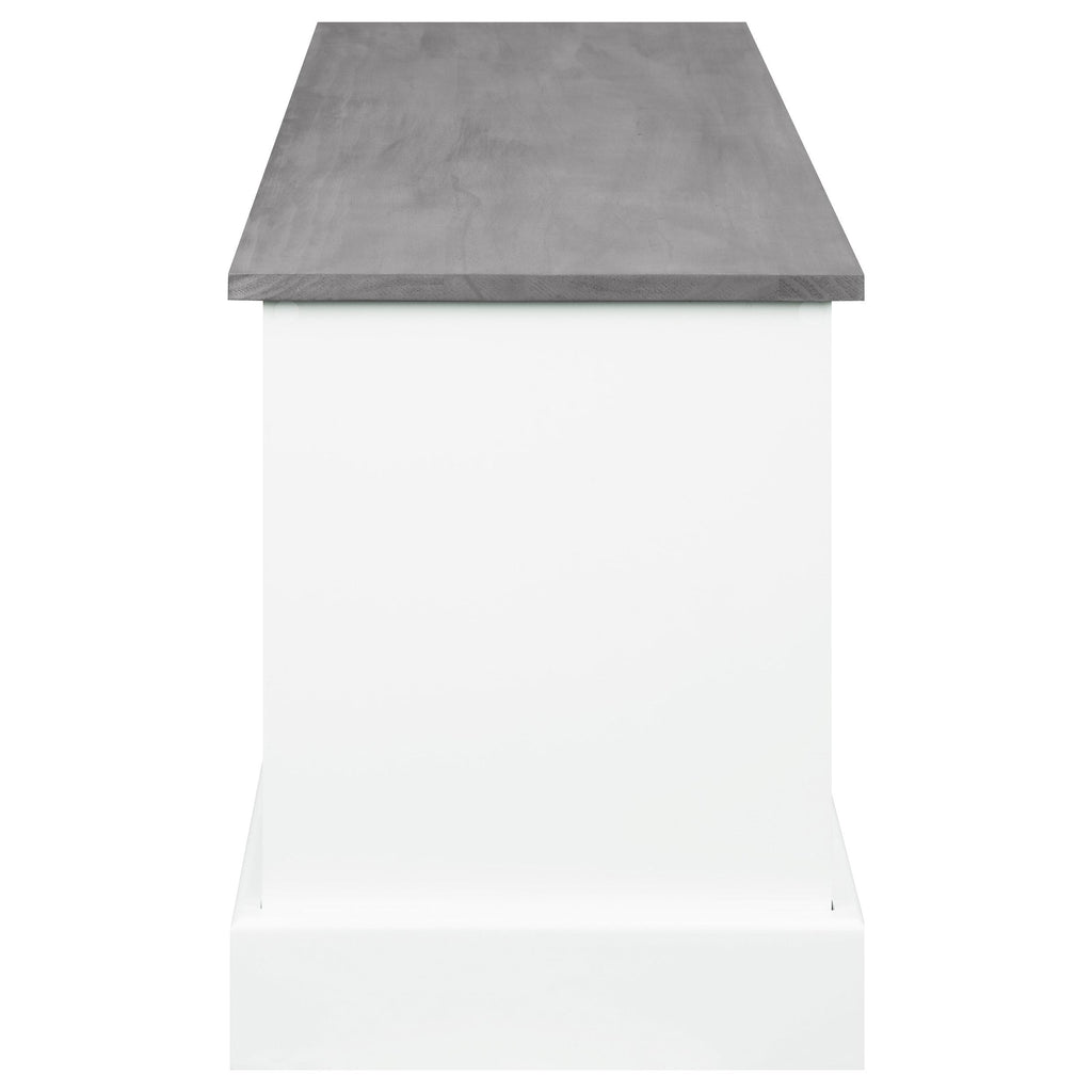 Classy and convenient, this stylish bench is a storage essential. With three versatile drawers and three spacious baskets, it offers multiple options to keep your home neat and organized. Its base is finished in a soft, lovely shade of white. Its surface and storage baskets create a lovely contrast with a subtle finish of weathered grey. Dark-colored drawer handles add a striking accent to its classic design, completing its glamorous look.