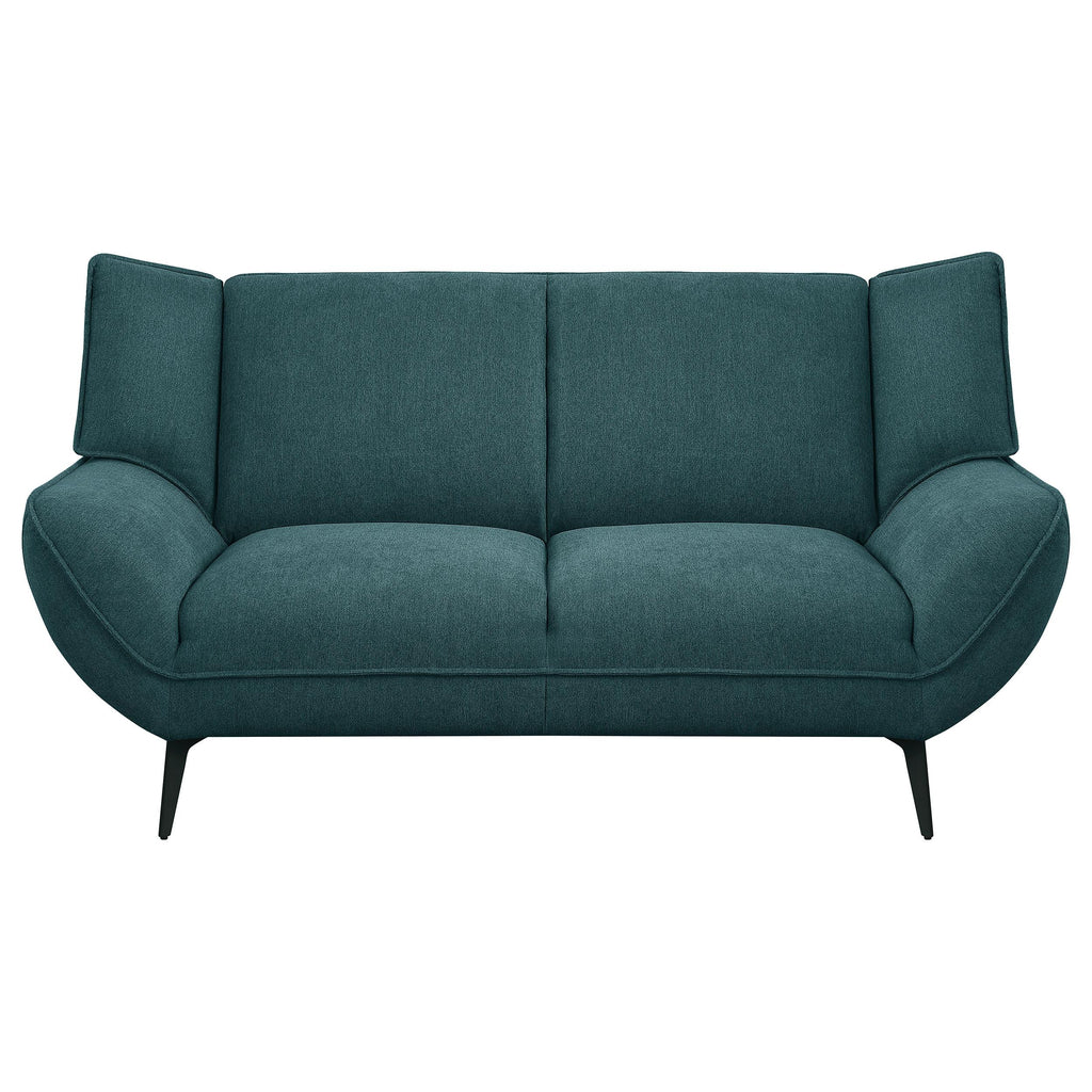 Your casual living space is ground zero for style and comfort with a two-seater loveseat echoing mid-century modern design elements. This comfy and stylish loveseat is a great choice for more compact spaces and small apartments, or as a partner to a sofa. Gorgeous teal fabric upholstery opens up possibilities for a lush palette choice. Flared arms and wing backs attach to non-removable seat and back cushions. Tapered black metal legs coordinate with the beautiful teal upholstery.