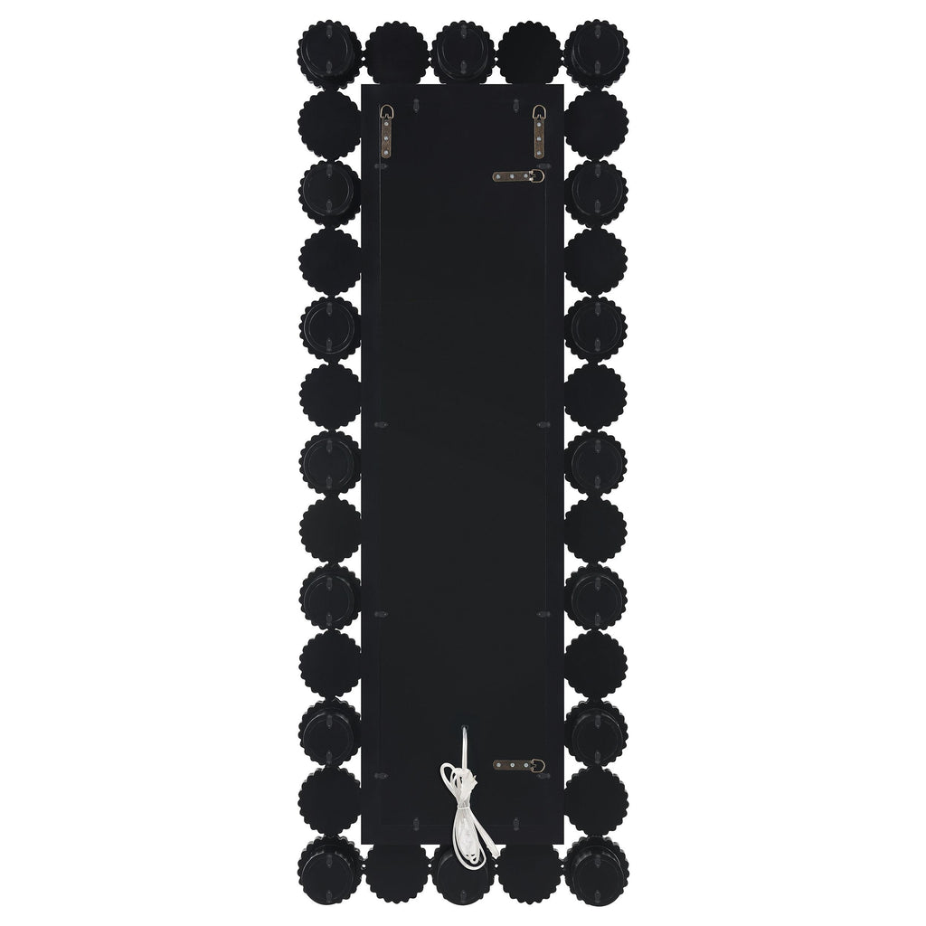 The contemporary full-length mirror lends a wonderful accent piece to your rooms. Featuring 16 LED lights that offer an even glow adding a glamour style to this piece. The Hollywood inspired frame is bordered by individual round mirror tiles, each further framed in sparkling mirror trim. Bold lines and sophisticated mirror plates merge to offer a modern touch. Situate this striking accent mirror within an entryway foyer to greet family and guests, or simply find your beautiful look through this mirror.