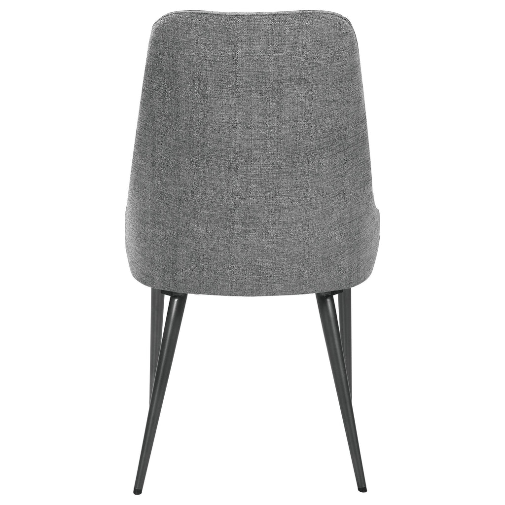 • Modern side chairs have a comfort curve in the back with textured woven grey fabric upholstery