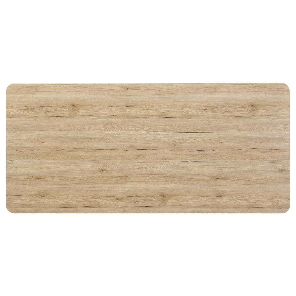 • Table top is a natural, rustic oak grain, made of engineered PVC laminate for ease of care; perfect for busy homes