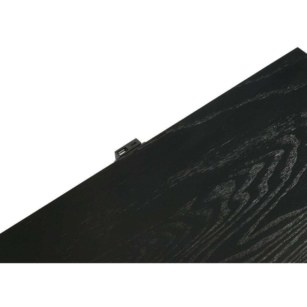 Put a fresh spin on your bedroom with the addition of a modern nightstand. Its three drawers provide plenty of storage at your bedside, great for books and personal items. The top drawer includes felt linking top protect important items, and a built-in USB port adds access for easily charging your phone overnight or while lounging in bed. The nightstand features a crisp black wire brushed finish that enhances its wood grain details, and gold finish ball knobs and legs add the perfect dose of contrasting warmth. Rounded corners soften the silhouette while a generous top is just right for a reading light or decor.