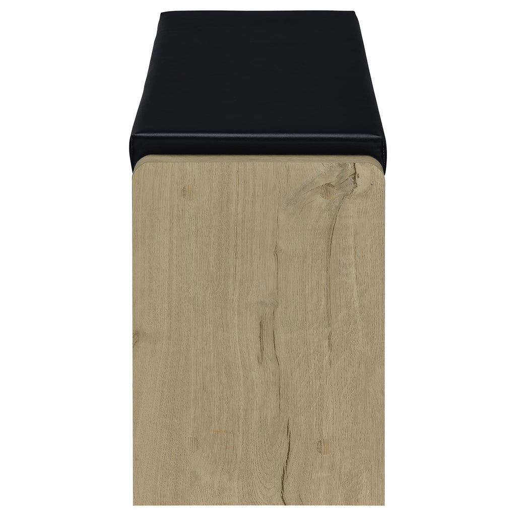 Make your entryway or garage both functional and stylish with this versatile storage bench, designed to keep your space organized. Featuring a foam cushion upholstered in sleek black faux leather, this bench offers a comfortable seat while you put on or take off your shoes. The engineered wood frame, finished with an eco-friendly laminate, offers durability with a modern appeal. The storage includes a pull-out drawer, an adjustable shelf, and an open compartment, perfect for organizing shoes, bags, or other essentials. This bench ensures all your entryway necessities are easily accessible.