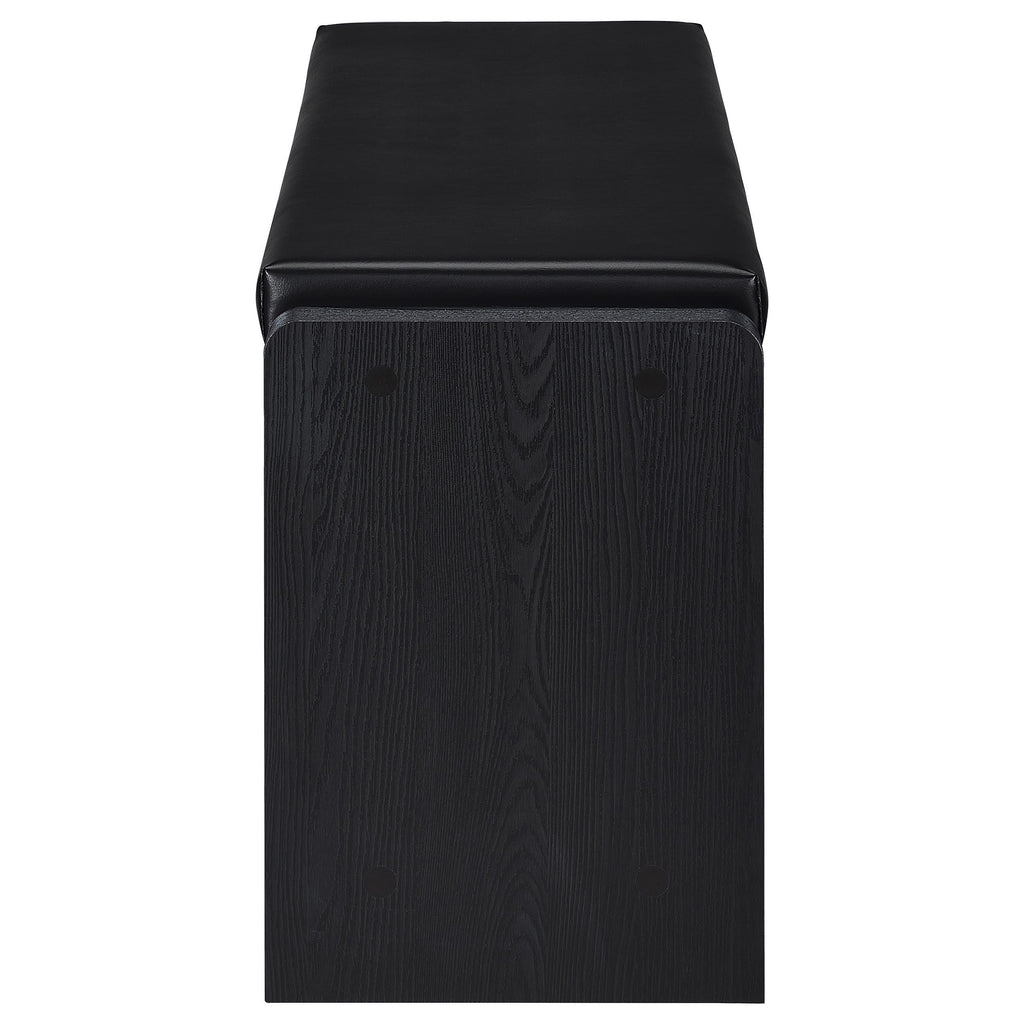 • Storage bench with comfortable foam cushion and black faux leather upholstery