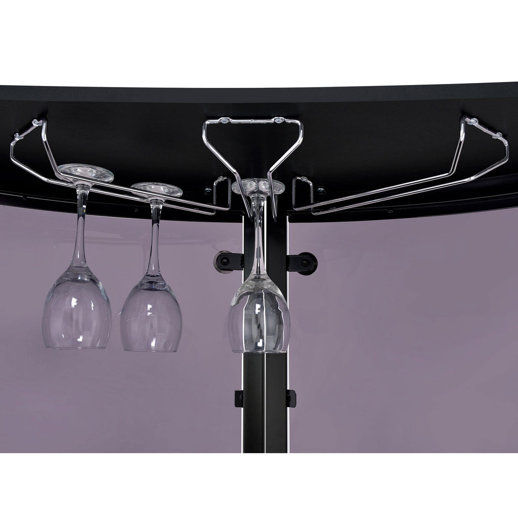 Beautifully crafted with high-quality acrylic panels and a clear glass top, this contemporary bar unit lets you entertain in style. Its smooth, curved silhouette gives it an elegant appearance. With a spacious storage area, it leaves plenty of room for all of your bartending needs. A convenient stemware rack completes its convenient appeal. Whether you're hosting a swanky soiree or a casual cocktail hour, this bar unit is ideal for any occasion.