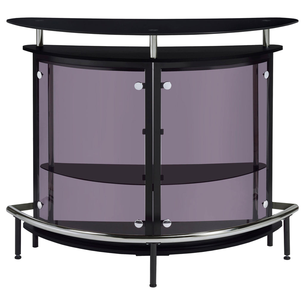 • Contemporary black bar unit with a curved metal frame in a classic black finish
