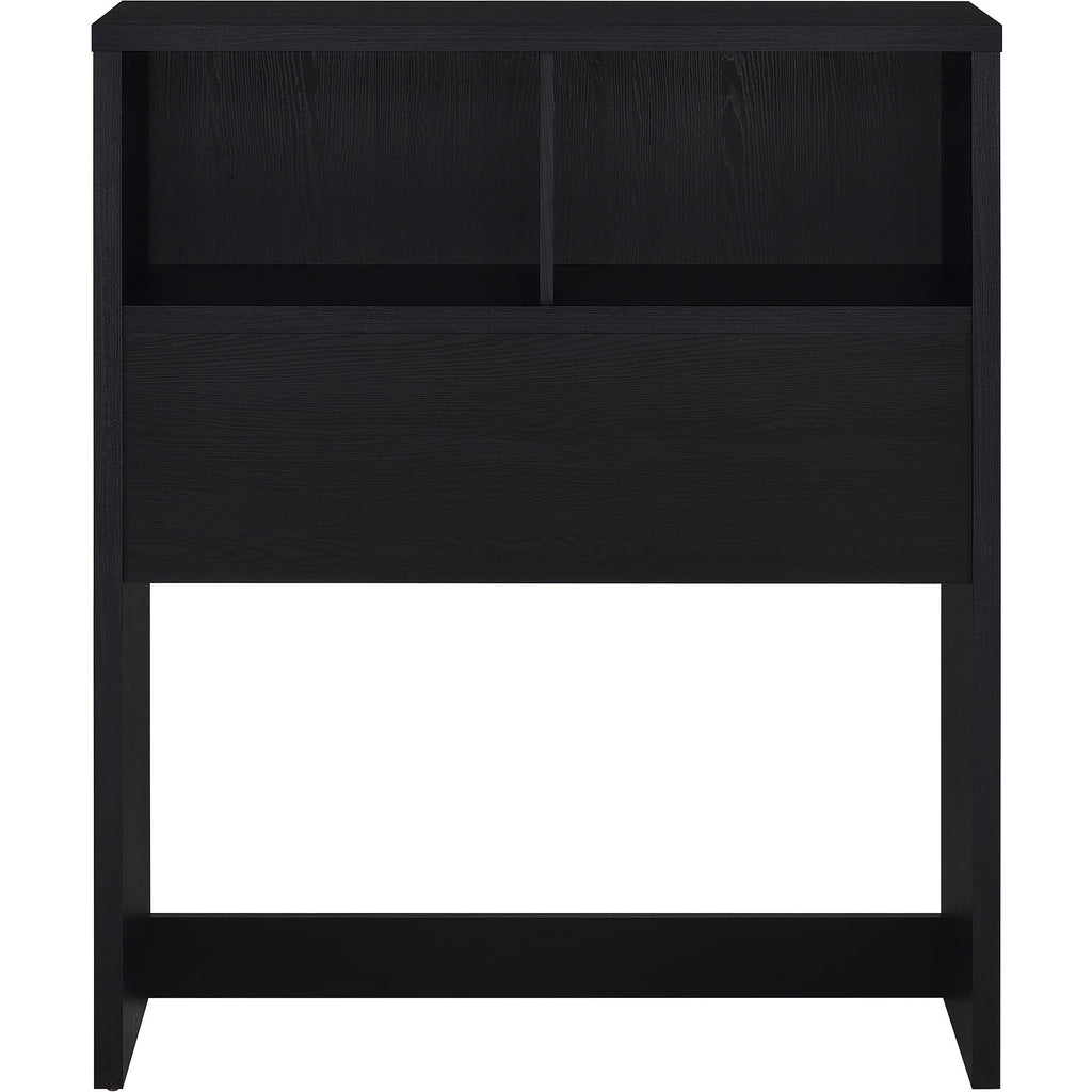 • Twin bookcase headboard with a black oak-inspired finish