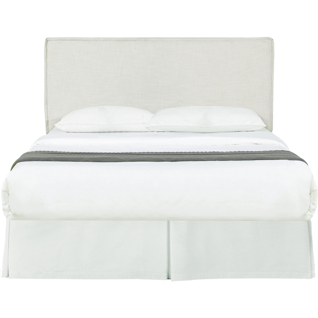 Inspire modern artistry in a contemporary bedroom space with a headboard that shines as a focal point. This updated headboard creates a mix of clean lines and tempting upgrades to transform a bedroom into a haven for relaxation. Versatile and timeless, flange details dress up the outer border, adding a dimensional effect. Textured sand finish fabric wraps over the headboard to deliver a light essence and a palette that accommodates a variety of options for matching case pieces, beds, and accessories. Constructed of pine wood.