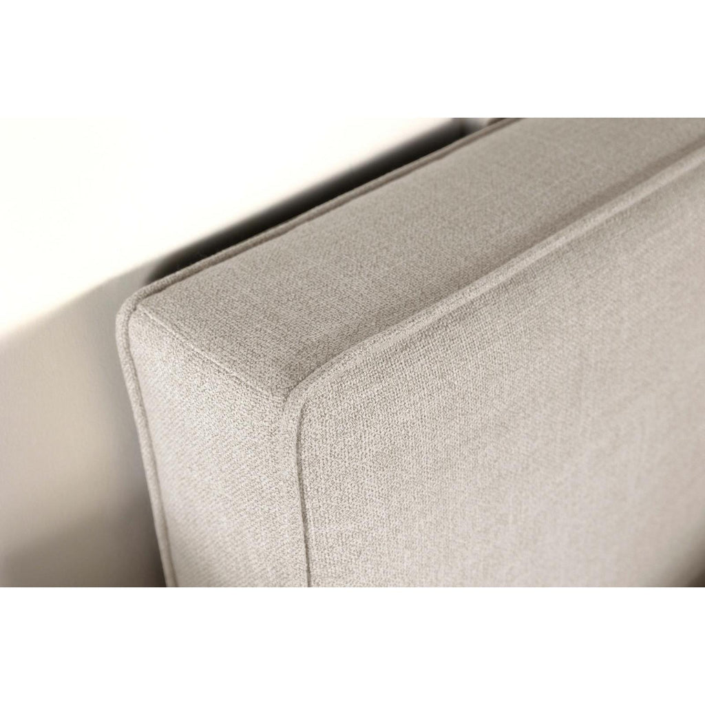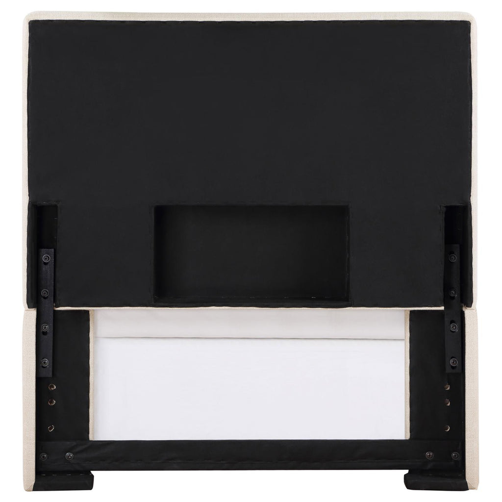 The exemplary and simple style of this classic headboard offers a perfect update to any bed. This upholstered headboard blends clean lines and dimensional upgrades to transform a bedroom into a haven for relaxation. Self-welt construction details add a sleek look to the outer border. Textured sand finish fabric wraps over the headboard, offering a modern look and a light, elegant palette that accommodates a variety of options for matching case pieces, beds, and accessories. Constructed of pine wood.