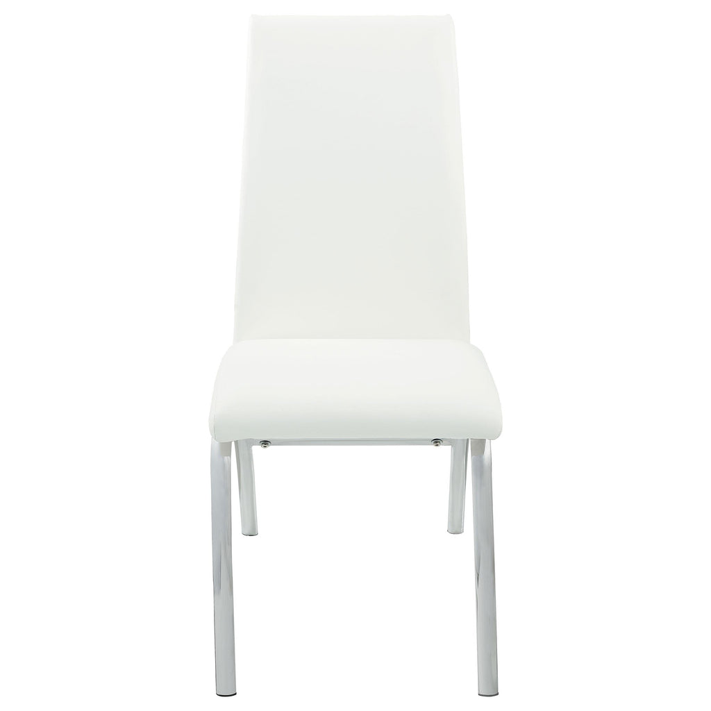Elevate your dining space with this modern dining chair, featuring sleek white polyurethane upholstery that brings a crisp, clean look to any room. The chair’s gracefully curved backrest and seat offer both style and comfort, making it ideal for long dinners and casual gatherings alike. Supported by sturdy chrome metal legs, this chair has a contemporary flair that adds a polished touch to your dining area. Its minimalist design easily complements modern and contemporary decor styles, creating a versatile seating option for various settings. Enjoy a chic and functional piece that enhances the ambiance of your dining room.