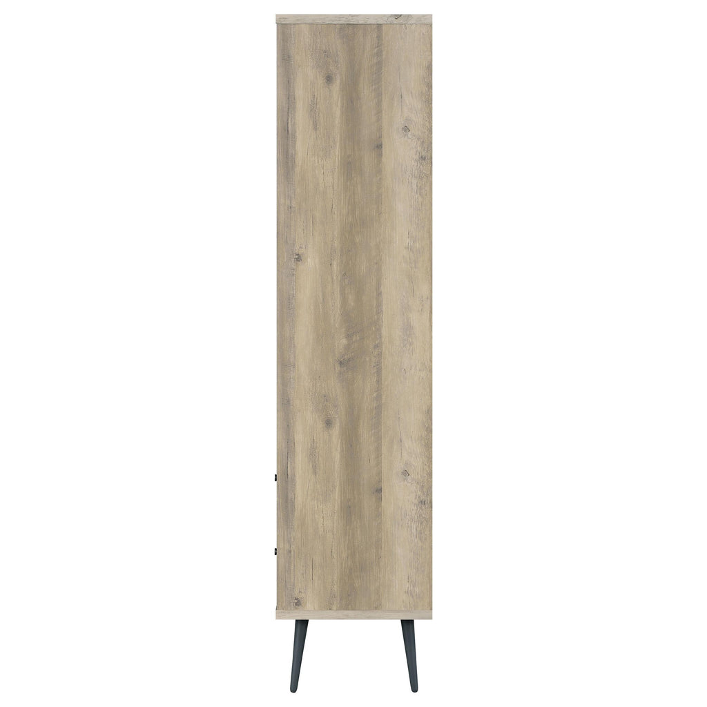 A nod to Euro design concepts adds a Scandinavian vibe to a bookcase you’ll want to consider. Make room for those scattered books and magazines in a central unit with a rustic feel and high vertical profile that saves space. This bookcase is made of antique pine finished rubberwood, hollow board, and assorted materials with a grain pattern creating eco-inspired organic beauty. Your living room or bedroom is the perfect spot for a bookcase with three alternated shelves featuring vertical dividers separating books, décor, and plants. Two lower drawers increase storage space, as splayed, tapered gray finish metal legs add a familiar style.
