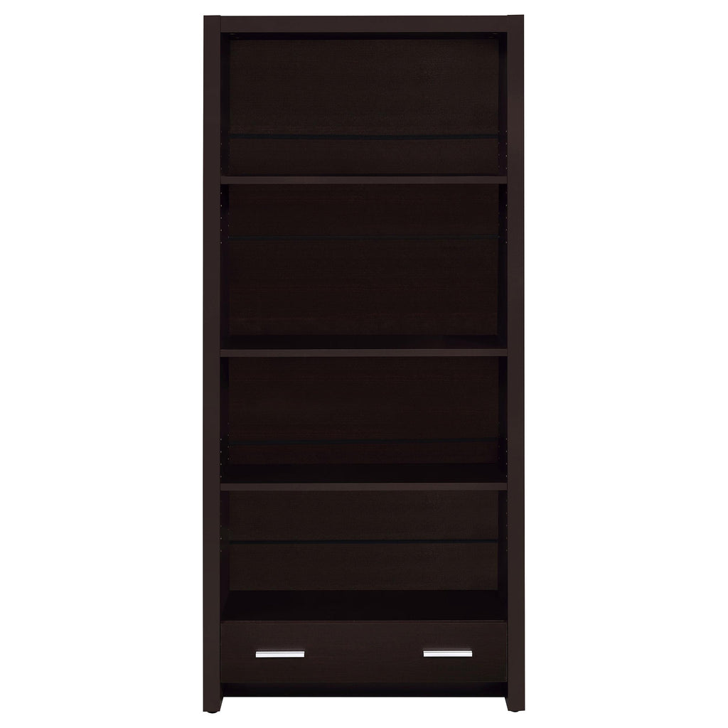 Make plenty of room for reading material. Designed to offer a modern look, this bookcase makes itself at home in an office environment or living space. Four shelves offer plenty of room for volumes of books, periodicals, and decor. Find hidden storage space in a single drawer below, with smooth-operating Euro glides. This tasteful bookcase is a perfect partner to an expanded desk set.