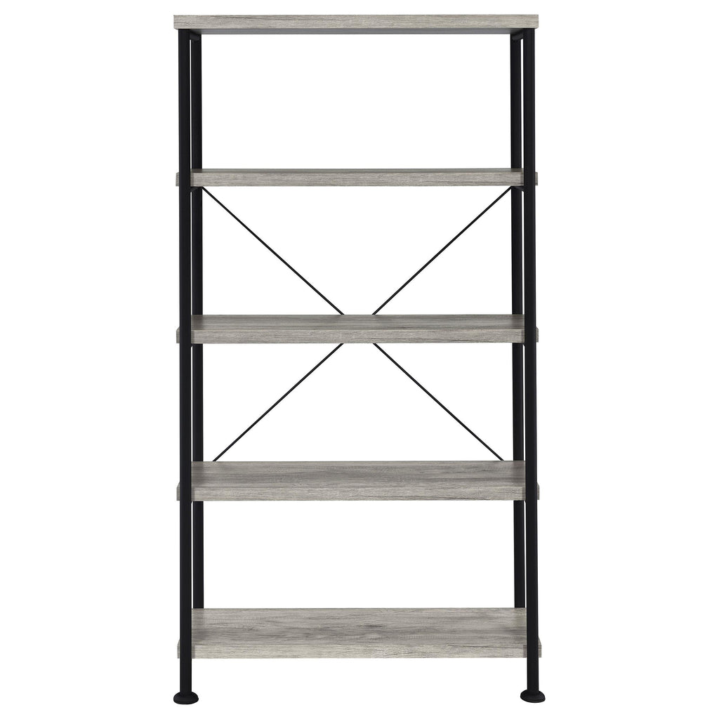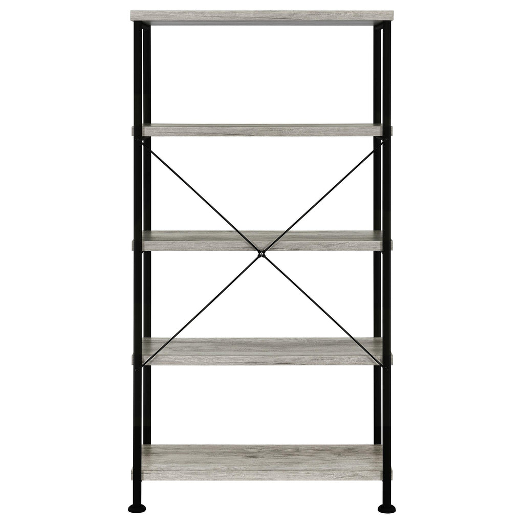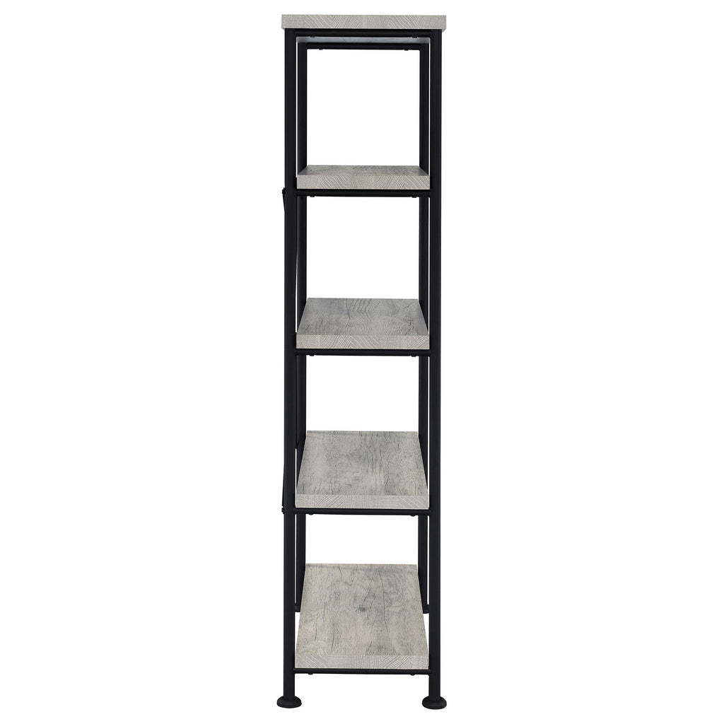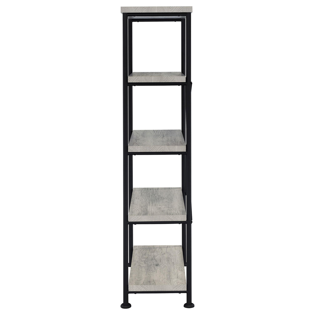 Stay true to modern ambiance. With a lovely palette and sophisticated design, this bookcase becomes an important part of a home office or living space. Place books and decor on four shelves finished in grey driftwood. A slight industrial flavor brings intriguing character and a softer aesthetic that blends in more traditional settings. This bookcase is a perfect choice for energizing any space.