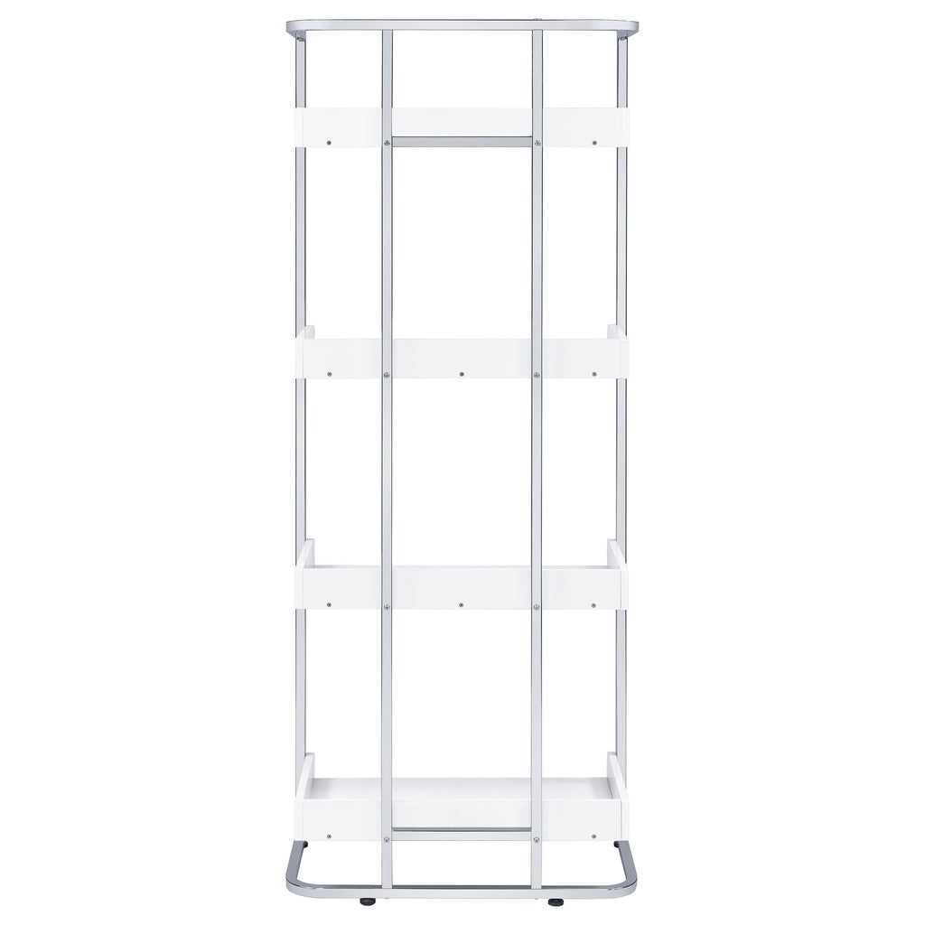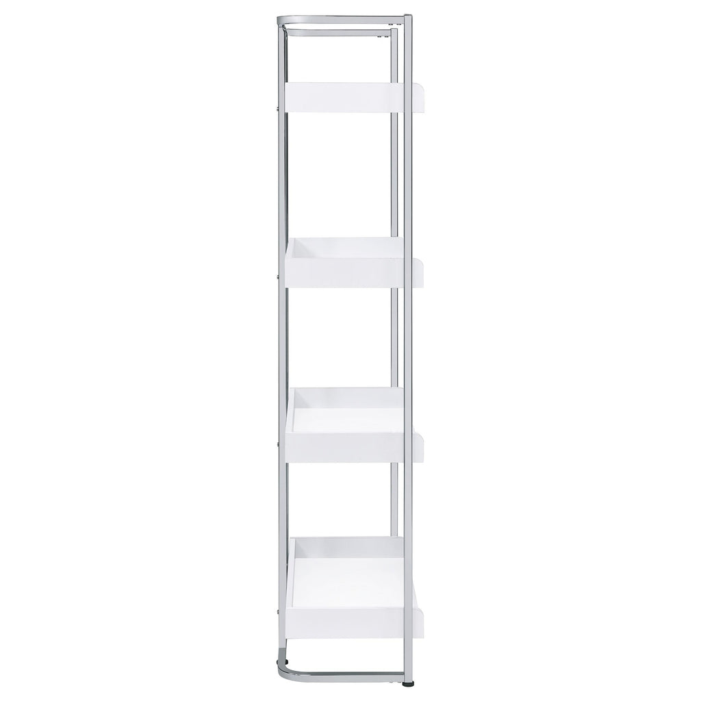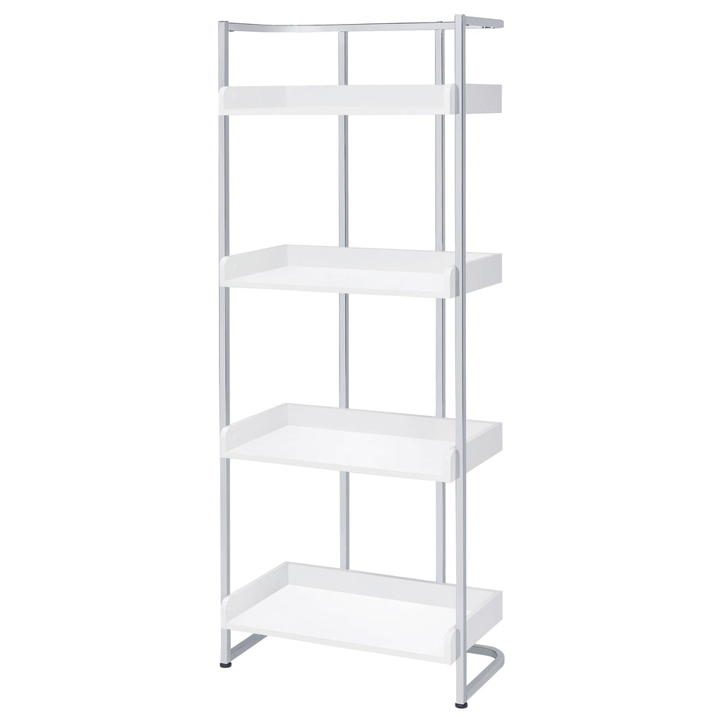 A steel bookcase is bound to steal your heart with its stylish appearance. Four roomy shelves allow for displaying your favorite novels. With its open back design, you'll have no trouble finding the ideal spot in your modern office. Its construction ensures a durable and long-lasting upgrade. This piece is supported on a rounded open base.