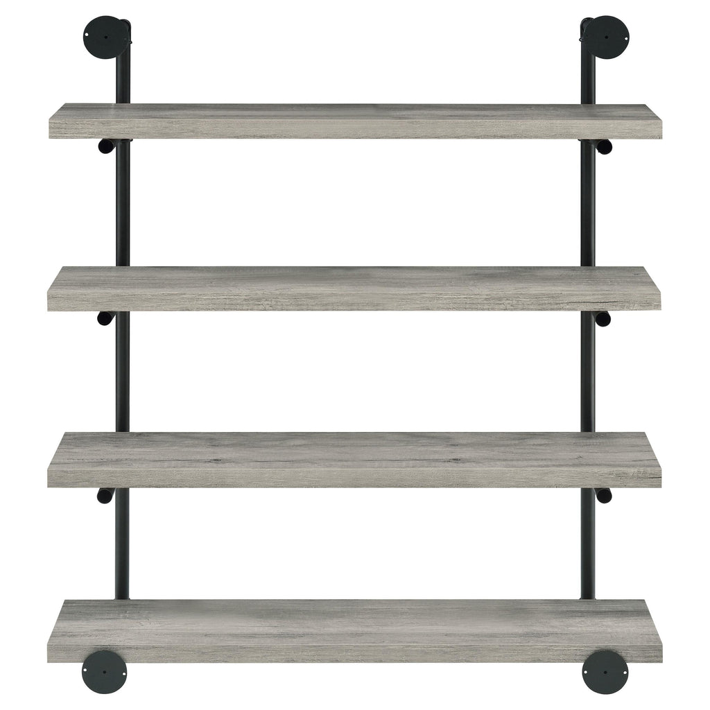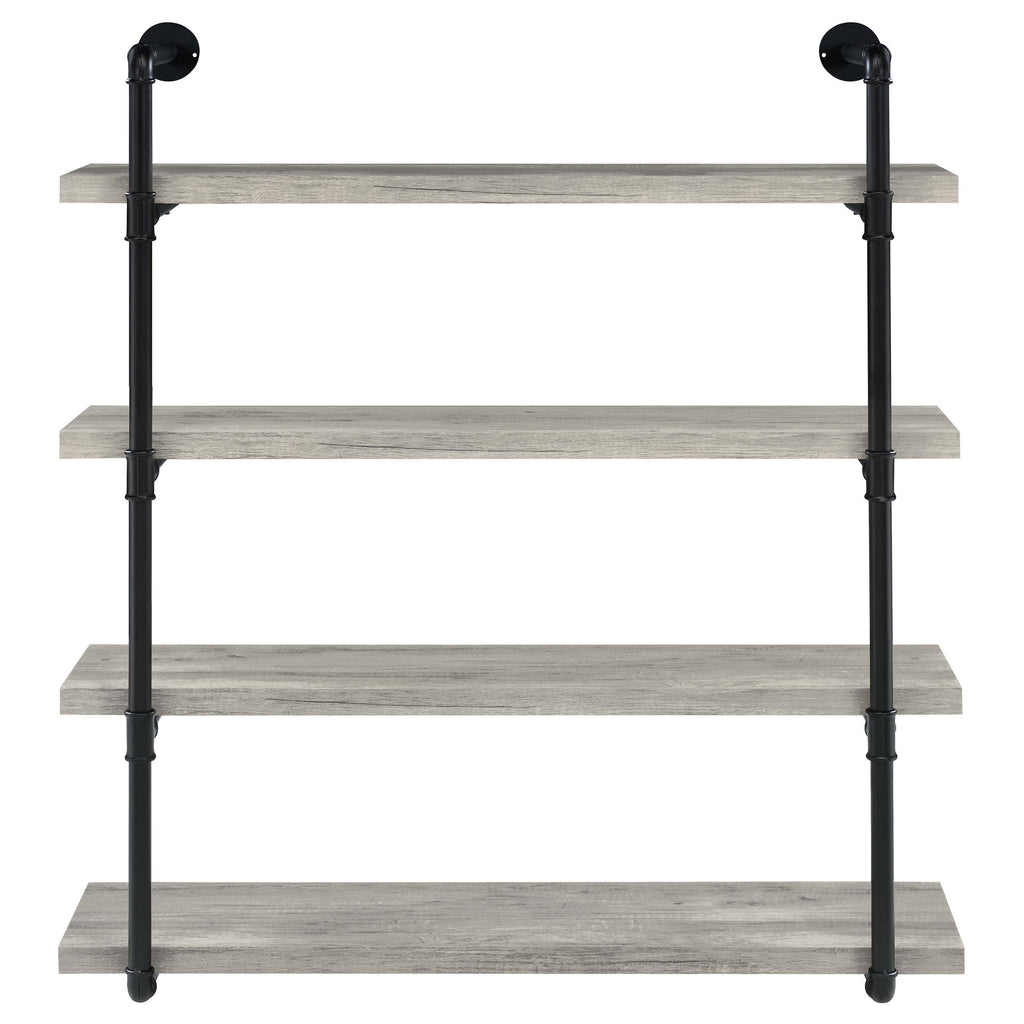 Industrial design can be elegant, as shown by this wall shelf. Plumbing pipe frame highlights the rugged utility that's the hallmark of the style. Wall hanging adds a unique element to the piece. Incorporates four (4) open shelves for ease of storage or display. Available in a variety of finishes and widths for your specific style and space needs.