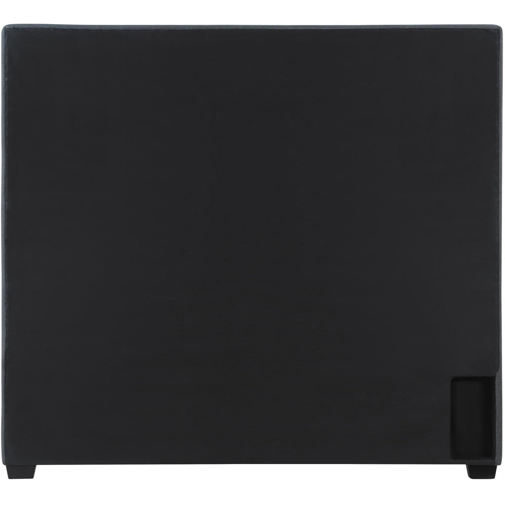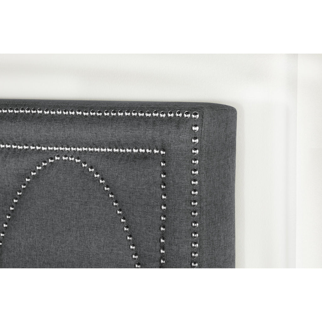 Treat a master or bedroom suite to the ultimate in Art Deco flavor with a plush, enticing panel bed. Designed to infuse romance and artistry, this decadent bed is wrapped in charcoal linen-like fabric. Its construction features a mix of hardwoods and wood products. An extra tall headboard presents a showcase vibe with a scalloped pattern created using individually hand-driven nail heads as an outline. Matching padded side rails and footboard complete the exquisite ambiance of a must-have anchor piece for a glam boudoir.