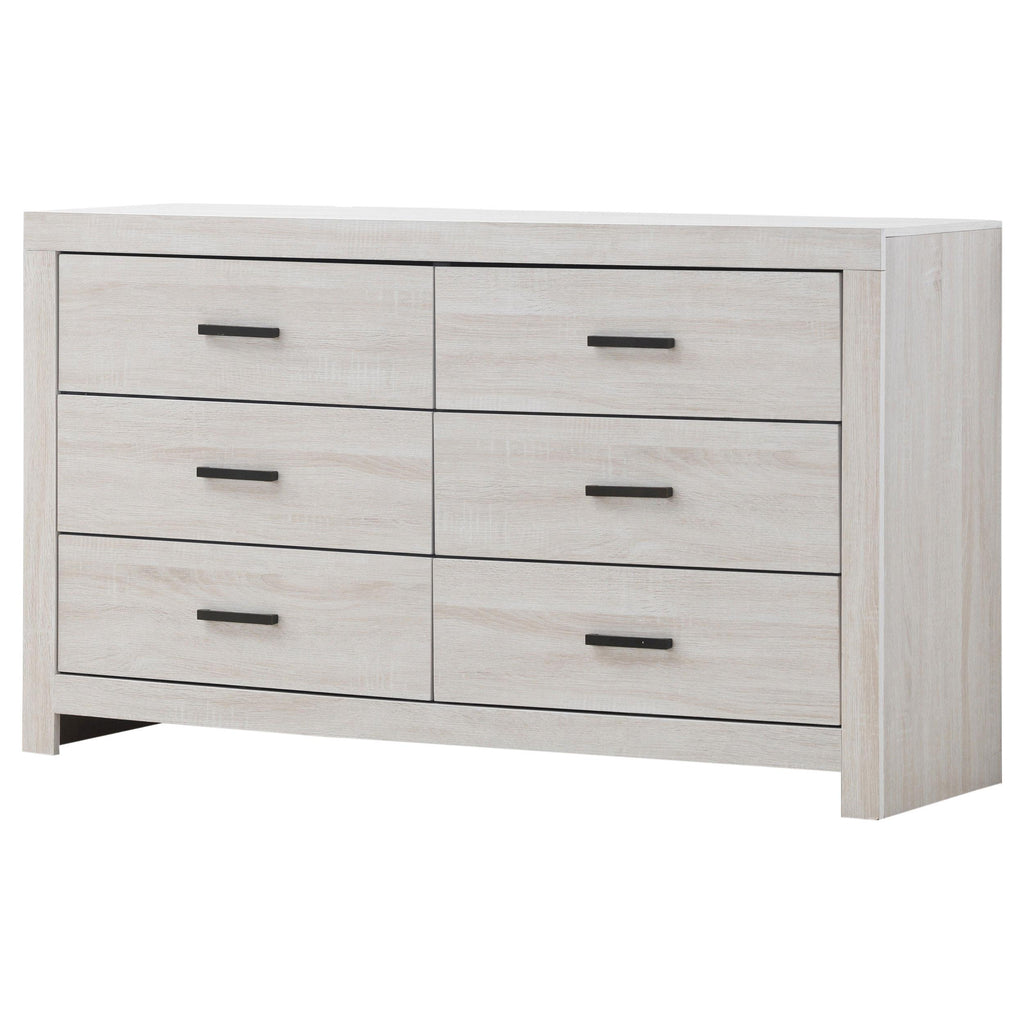 Bold and contemporary, this wooden dresser freshens up a bedroom with cool, modern appeal. This piece is crafted with a 3D paper veneer for added quality and easy maintenance. Dark bronze handles top each drawer to add a classic element to its modern look. The deep storage drawers easily accommodate a wide variety of wardrobe essentials. This beautiful dresser is available in multiple finishes to easily blend with any palette.