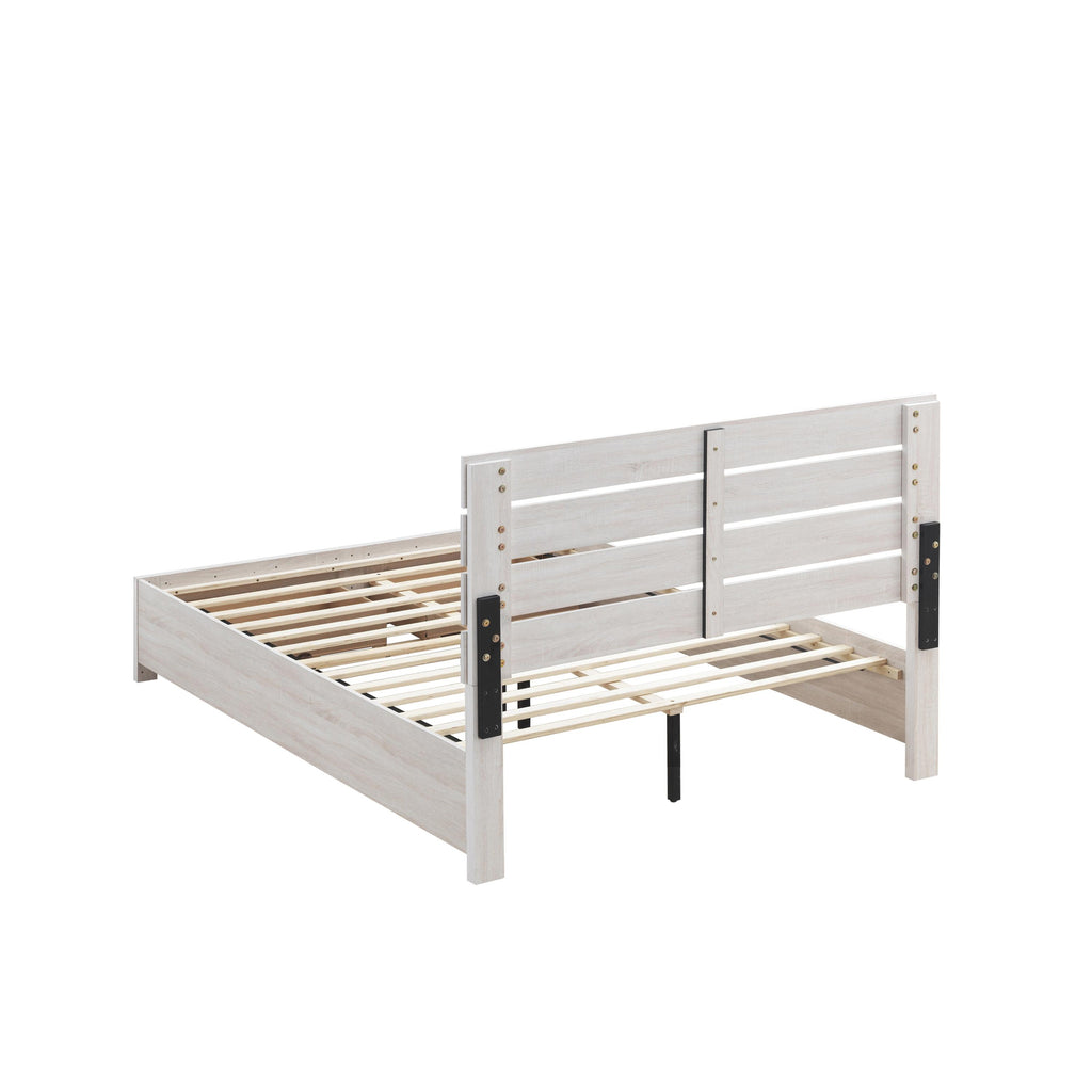 Elevate a bedroom with an exquisite focal point that exudes rich, country vibes. This handsome, rustic platform bed is classically crafted with bold, rustic appeal. A 3D paper veneer makes it easy to clean and maintain. Two footboard storage drawers offer convenient storage space. A plank-style headboard brings it all together with striking, old-world appeal.