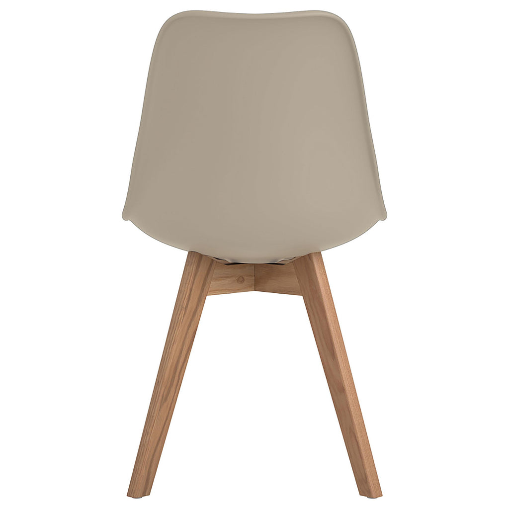 Bring a dining room to life with this stylish, mid-century modern dining chair. Crafted with durability in mind, its heat and stress resistant design stands up to heavy duty use. The smooth, rounded seat is topped with comfortable padding. The angled wooden legs create a pleasing, two-tone look. Surround your dining table of choice with a set of these upholstered chairs to create a classic dining ensemble.
