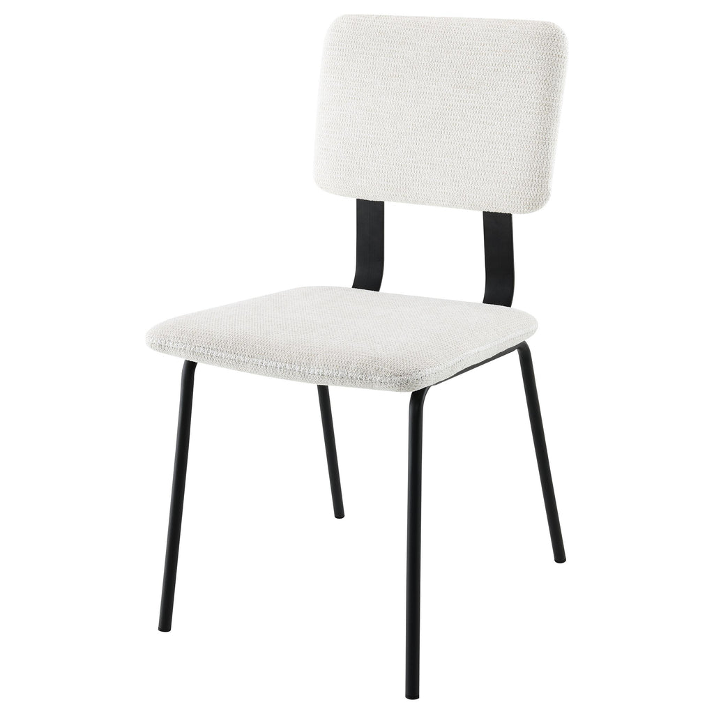 Reimagine your comfortable and inviting dining table with a set of two modern side chairs. Each features an armless profile with clean, slim lines for a versatile design. Sure to complement in a variety of settings, the chairs feature slim cushions with neutral upholstery that offers comfortable seating for friends and family. Each chair features a black finish base, complete with inverted U-shaped legs and thick back supports that add depth and contrast. Choose this set for a modern dining table in your kitchen or dining room.