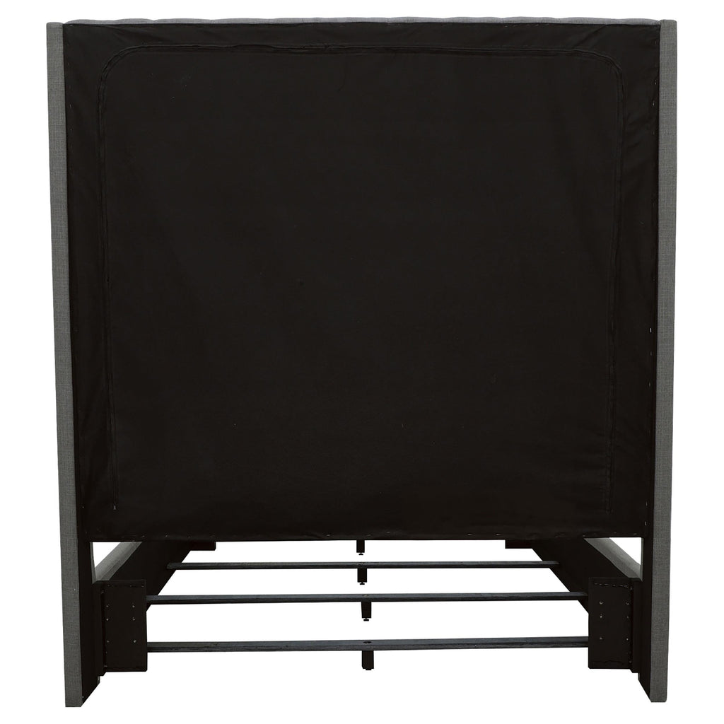 This impressively-styled bed makes a bold yet fashionable statement. It features an imposing, 72" high headboard that's bold. Yet, the headboard comes with button tufted fabric that's stylish and eye-catching. The bed sits on solid wood legs finished in lush cappuccino for a touch of charm. This bed is a graceful addition to the bedroom.