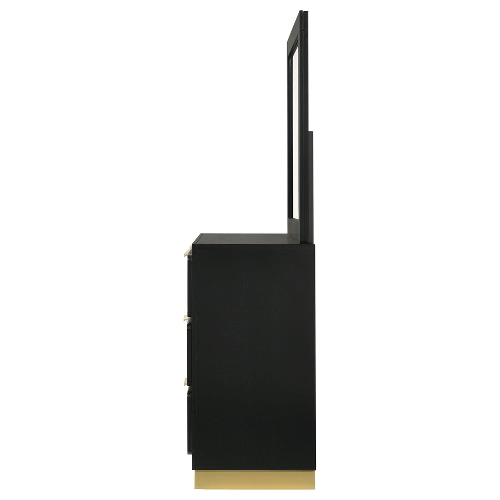 Unveil the essence of minimalism and modern luxury with our sleek six-drawer dresser and matching mirror, a perfect addition to both master and guest bedrooms. The clean lines and Mid-Century Modern flair of the dresser blend seamlessly with its straight handles and matching base, offering spacious storage with a refined aesthetic. Its smooth center glides ensure functionality without compromising on style. The accompanying mirror, framed with the same care and precision, extends the look upward, adding height and elegance to your space. This duo, versatile and sophisticated, pulls together a statement-making ensemble that transcends style trends with enduring simplicity.