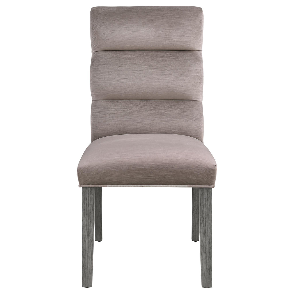 A pillowy look and feel brings ultimate comfort to a casual living space, targeting your kitchen or dining room with a light, floaty vibe, and adding a festive feel. This set of two side chairs checks all the boxes of design, comfort, and easy-living elegance standards you embrace to make a setting fashionable and functional. These chairs feature rubberwood and hickory wood framing, with a cool grey finish over slightly tapered legs. Soft fabric upholstery embellishes a cleverly styled seating unit with an extra-high back and horizontal channeling. A tight yet plump seat provides perfect balance to round out a sleek design.