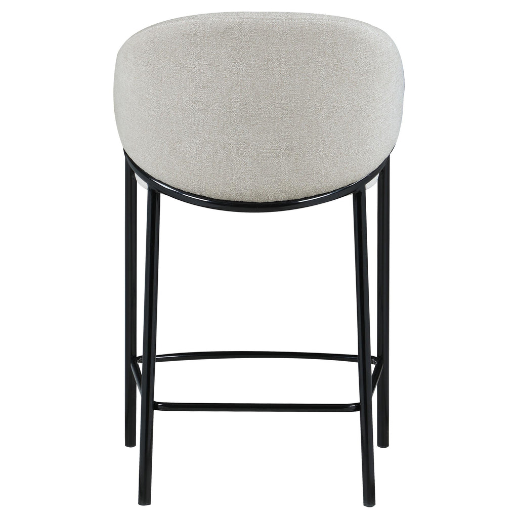 This pair of two stools offer a Hollywood regency look. With a tall and sleek design, the legs come in a glossy black finish that lends to many color palettes and offers a handsome look. Each stool has a cushioned seat, wrapped in a linen-like fabric that is soft to the touch. Plus, lean back and relax between sloped arm rests and a curved high back as you sip cocktails and chat with guests. Capping each arm rest is a gold accented piece that adds a glamorous touch.