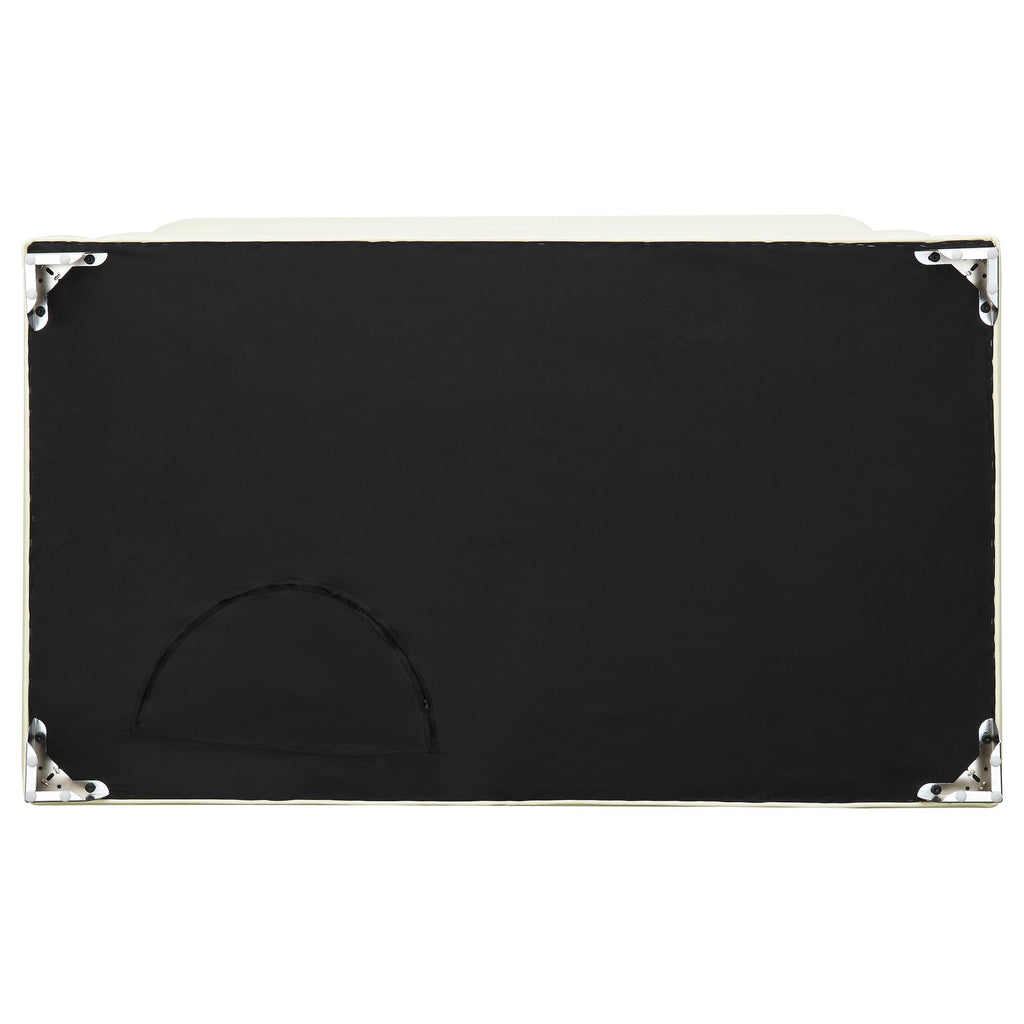 Add a dash of modern glamour to your living space. This sleek, stylish loveseat has a delightfully contemporary look. Heavy-duty chrome doorknocker handle accents give it an intriguing touch of artistry. Deep button tufting pulls its design together with fashionable flair. Upholstered in padded, breathable pearl white leatherette, this loveseat offers hours of cool, comfy relaxation.