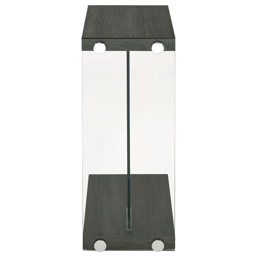 This C-shaped side table combines modern design with practical functionality, making it a versatile addition to your living space. Featuring a weathered grey engineered wood top and base, it exudes a contemporary woodgrain texture. The clear tempered glass frame enhances its sleek aesthetic while providing sturdy support. Perfect for small spaces, this table easily slides under furniture to save space and add convenience. Use it as a side table, end table, or laptop station for a stylish and functional setup.