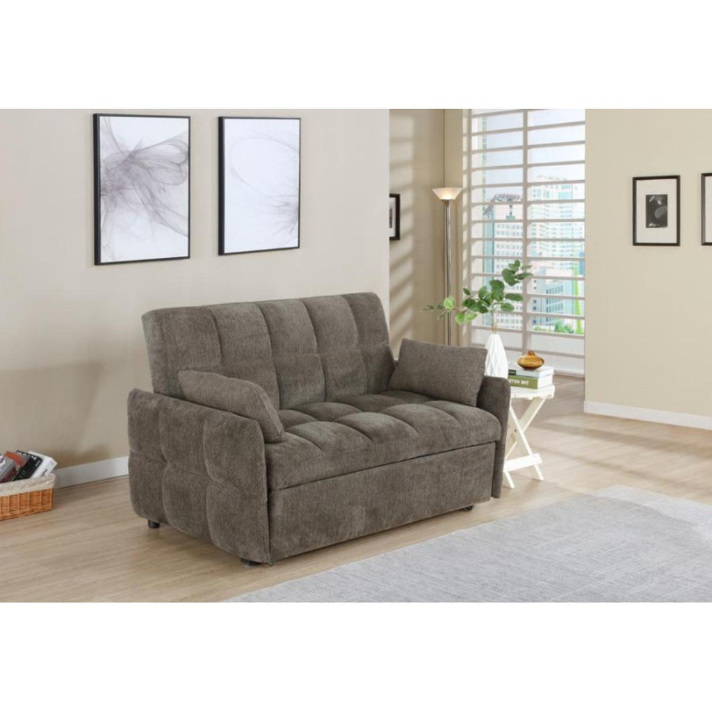 Get the best of both worlds for snoozing and lounging with this sleeper sofa. All over-tufting enhances the comfort of the chenille fabric. Slim arms and a rounded rectangular backrest give it a modern flair as a stylish sofa. Fold down the backrest to easily create sleeping space for guests. A pull-out sleeper mechanism makes this an easy-to-use upgrade for a living room or guest bedroom.