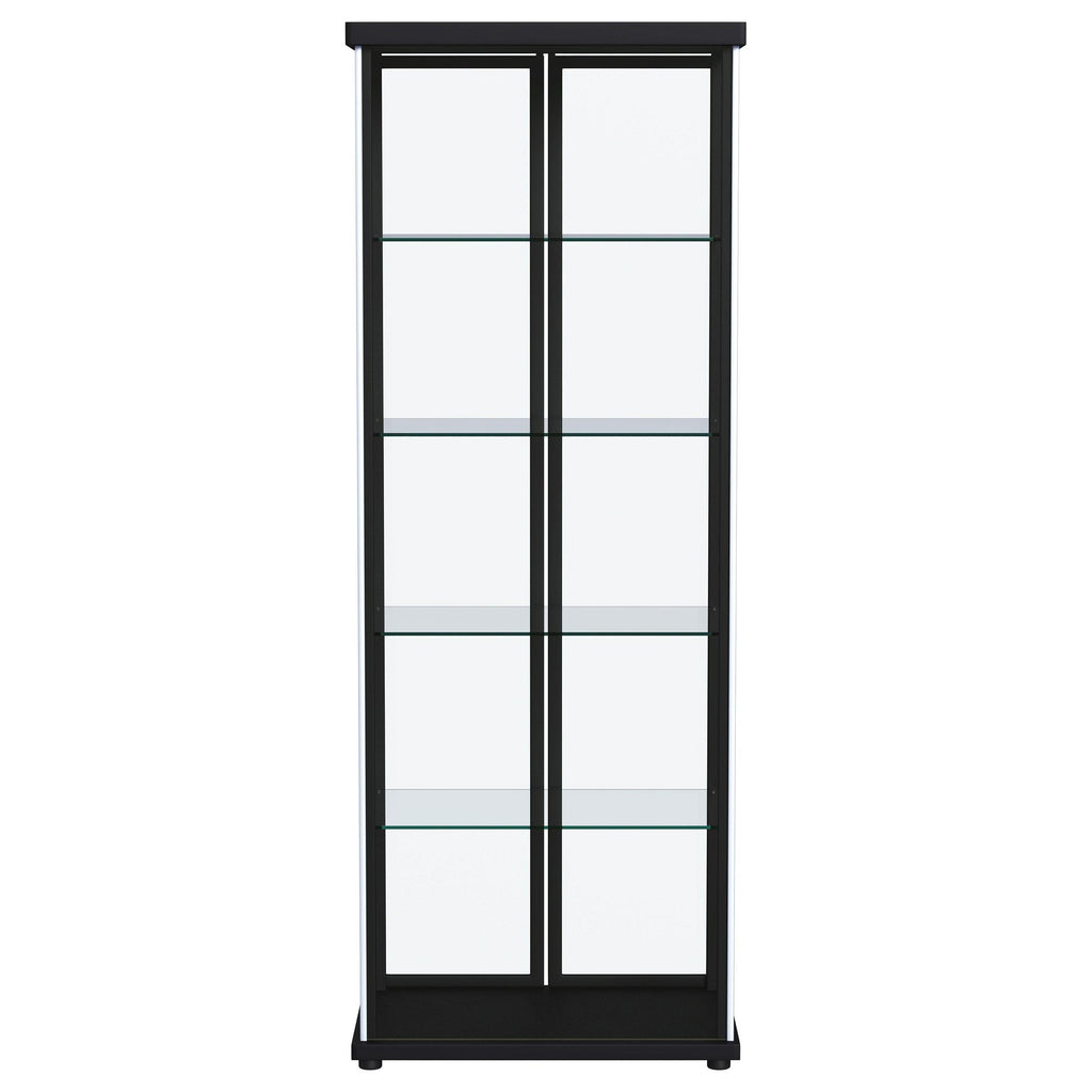 • Two glass doors and glass sides and back provide a stylish view of contents from any angle