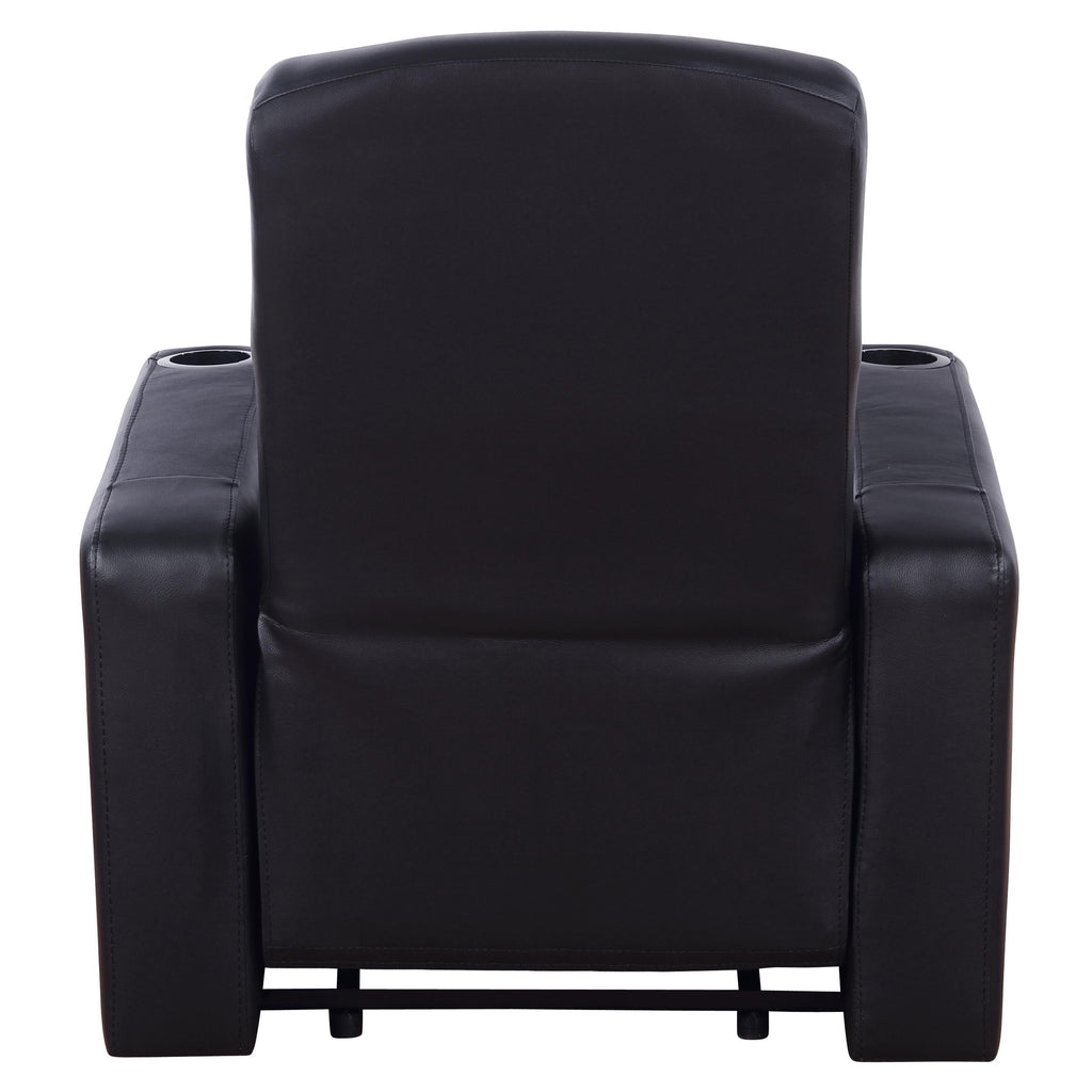 • Home theater collection upholstered in black top grain leather everywhere the body touches