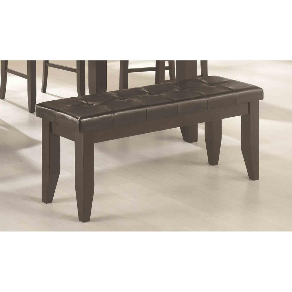 Study bench is a unique distinction of the Dalila Collection. Fashioned from hardwoods and oak veneers. Stout legs are finished in cappuccino and will stand up to daily (over)use. A casual companion of the dining table from the same collection, this bench will become a favorite. Padded seat for comfort and built for any combination: three children or two adults - even a cat, dog, and child.