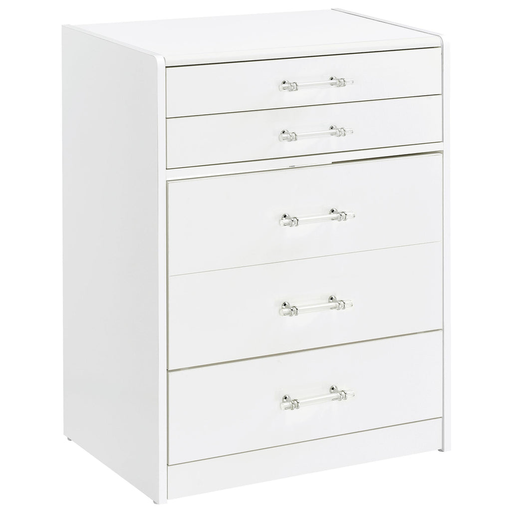 • Clear acrylic with chrome pull handles add a modern, elegant touch