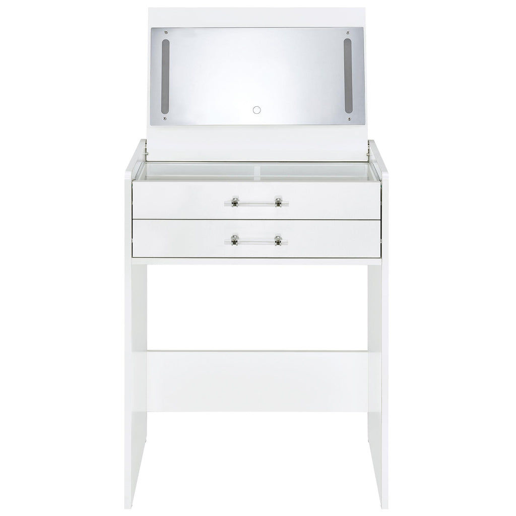 • White high gloss makeup vanity set crafted from engineered wood with eco-friendly laminate