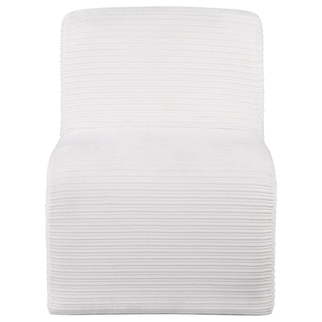 Introduce a sculptural component to your compelling seating group with this modern accent chair. It's an armless profile with a sinuous curvature that brings alluring elegance in any setting. Neutral upholstery has a ribbed look, creating impeccable texture and depth. The chair is structured with metal and plywood for durability, covered in foam for excellent cushioning that promotes comfort. Choose a pair for a refined living room or den setting.