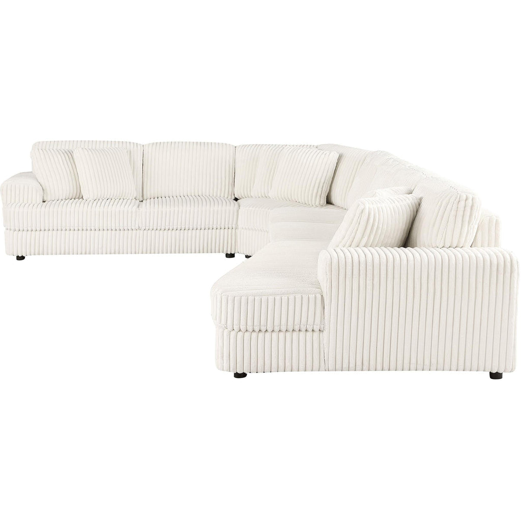 Transform your living space into a haven of comfort and elegance with our luxurious ivory wide corduroy four-piece sectional sofa set. Designed to provide ample seating for large families or entertainment gatherings, this grand-scale sofa set exudes plush, fur-like softness. Upholstered in luxurious ivory wide corduroy, it offers an exceptionally soft and inviting texture, mimicking the feel of fur for a cozy and warm seating experience. With attached seats for a tidy appearance and reversible back cushions for even wear, this sectional is perfect for any spacious living area, ensuring comfort and style for all.