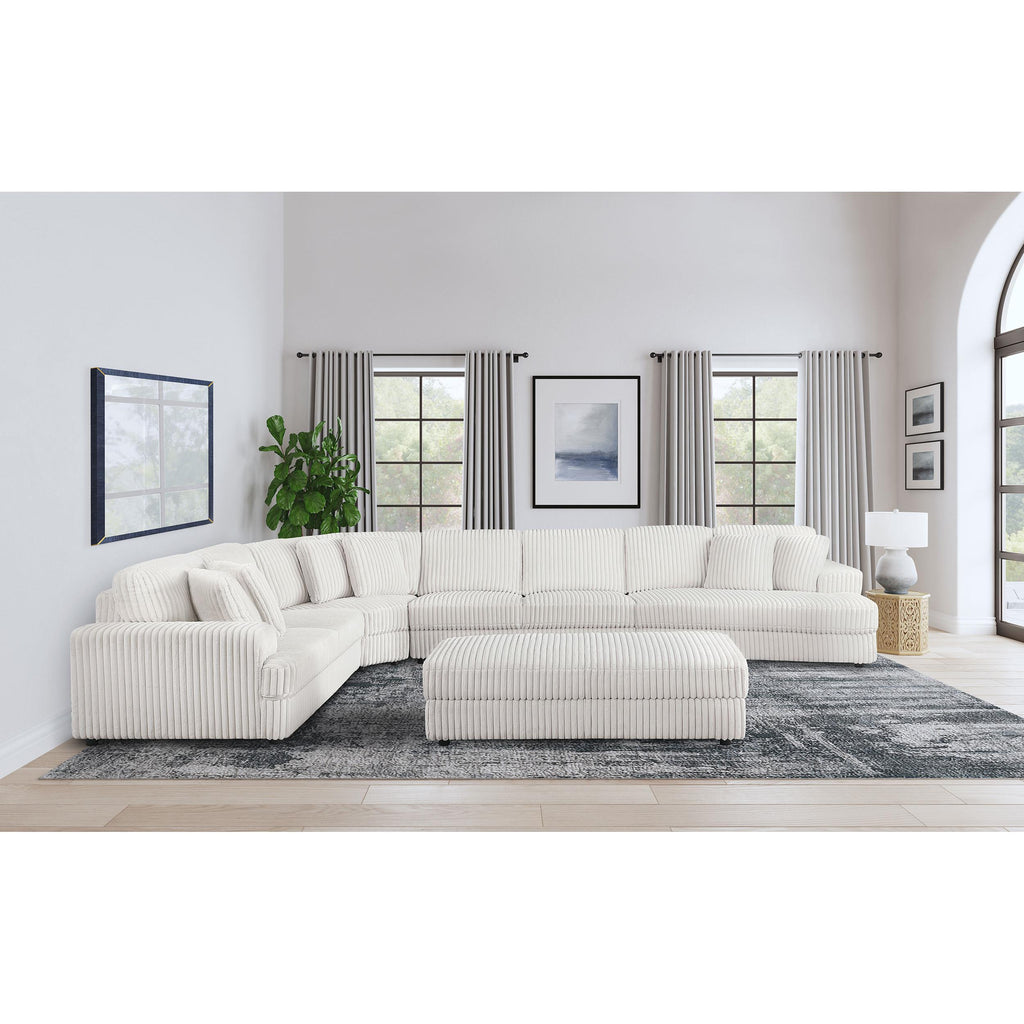 Complete your living space with the versatile and functional storage ottoman, designed to complement your sectional sofa set. Upholstered in luxurious ivory wide corduroy, this ottoman offers an exceptionally soft and inviting texture, mimicking the feel of fur. The storage ottoman provides convenient hidden storage for blankets, pillows, or other items, making it a practical addition to any room. It can also serve as extra seating or leg support for reclining, adding to the overall comfort and functionality of your living area. Perfectly designed to match your sectional, this ottoman enhances both style and convenience in your home.