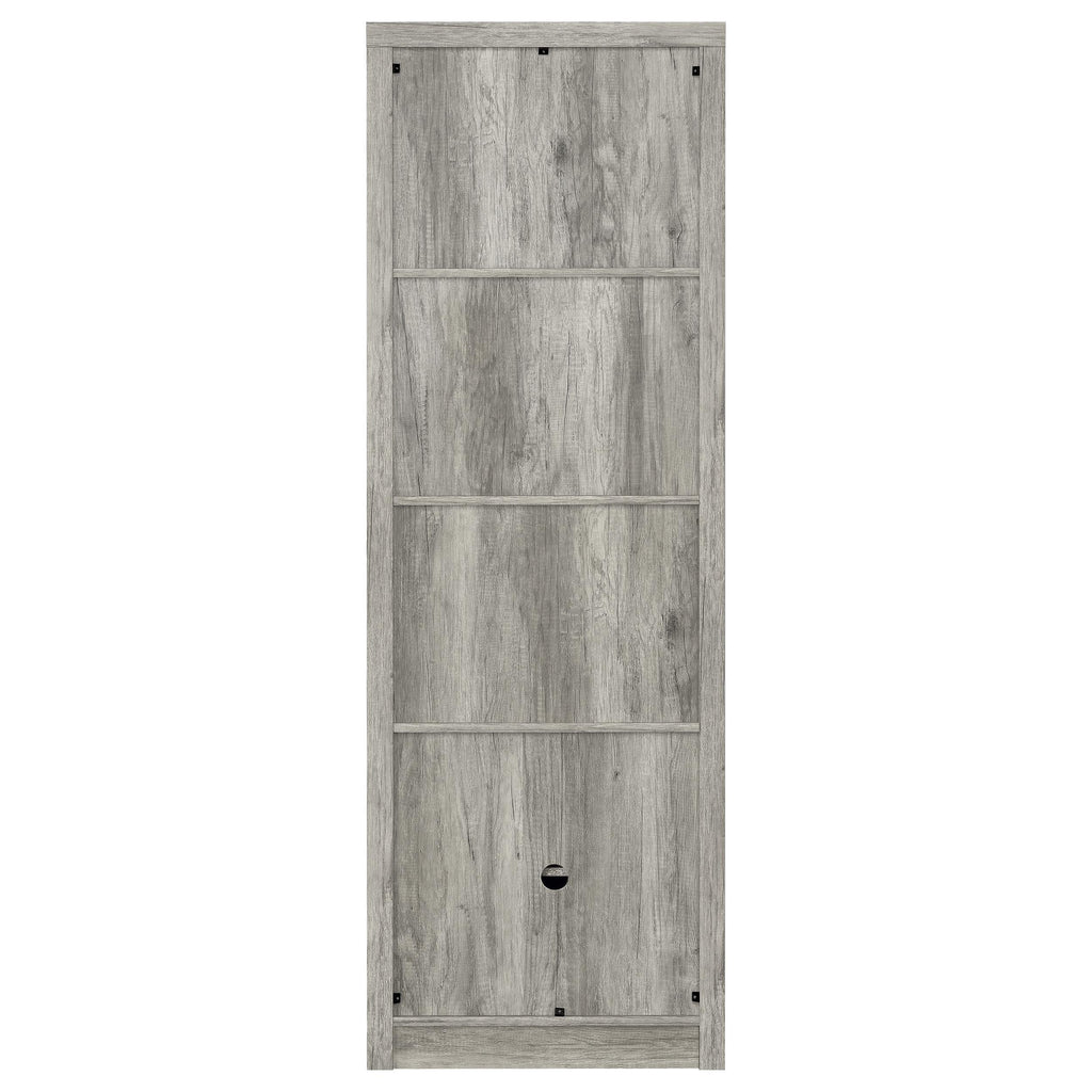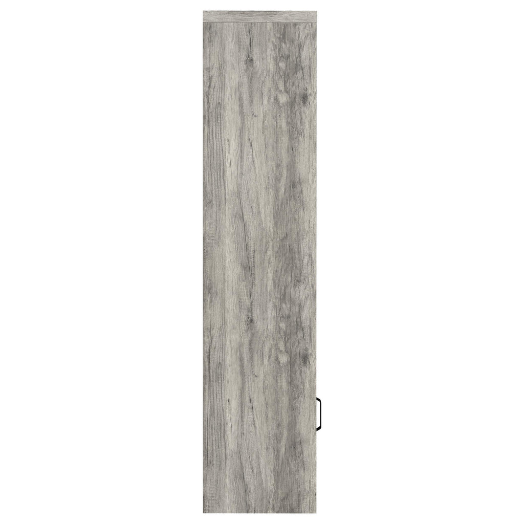 • Create an entertainment mecca with this three-piece media center featuring a central TV stand and two media towers with gray driftwood finish laminate surfaces for durability and scratch/dent resistance