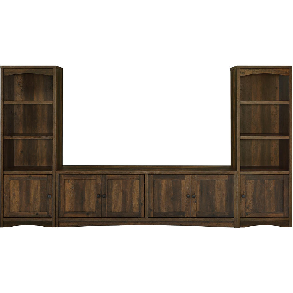 Transform your living space with this beautifully crafted entertainment center, designed to combine style and functionality for your media needs. Anchored by a 78-inch TV stand, this set is perfect for hosting up to an 85-inch television, offering a spacious and organized solution for your home. The TV stand features four doors that open to adjustable shelves, complete with cord management openings, making it easy to keep your media and gaming components neatly arranged. Flanked by two matching media towers, the entertainment center provides additional storage and display options with a mix of open shelving and concealed cabinet space. Finished in a warm, neutral tone, this entertainment center blends seamlessly with any decor, creating an inviting focal point in your living room.