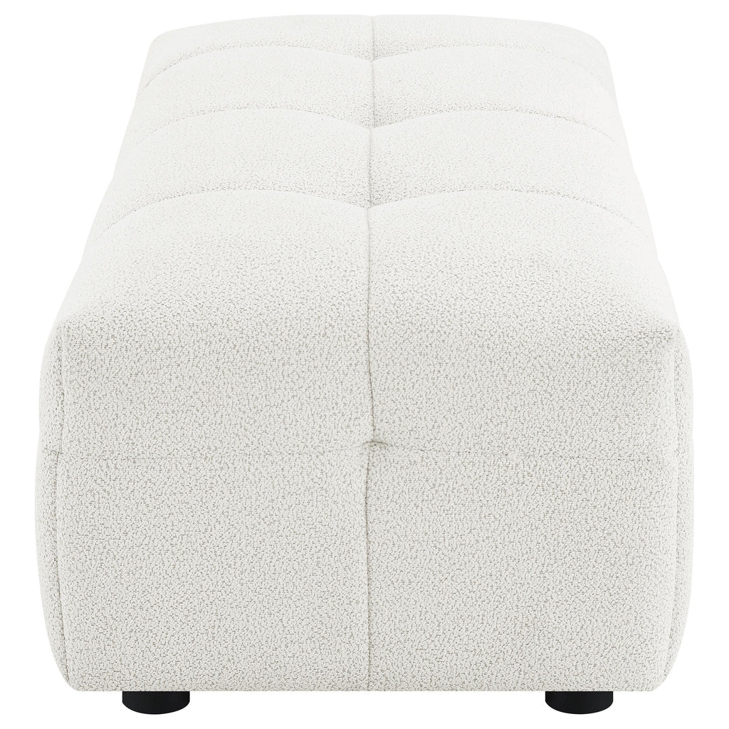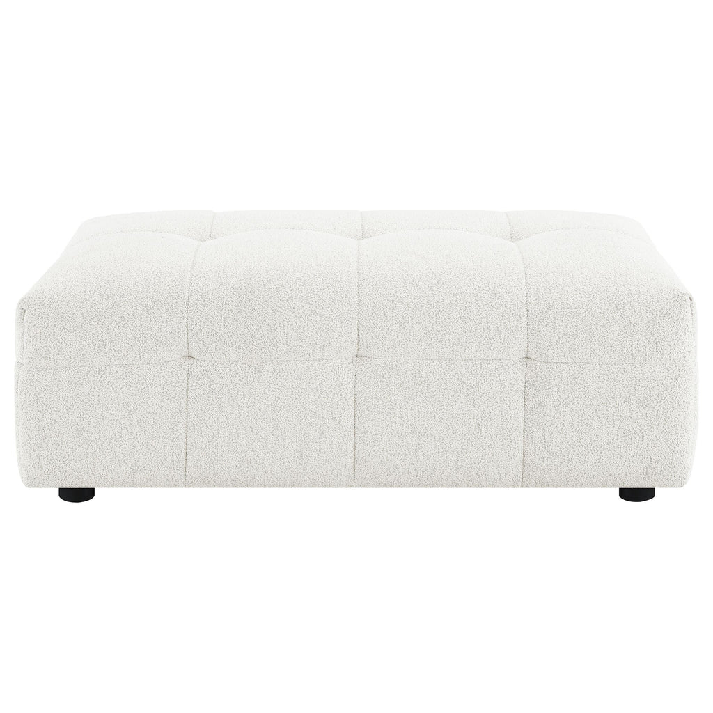 Enhance your lounging comfort with the versatile and functional ottoman. Designed to provide added leg support, this ottoman can be used as extra seating or a convenient footrest. Wrapped in soft textured boucle upholstery, it offers a plush and luxurious feel that complements any living room perfectly. The ottoman is designed for versatility, allowing you to flip and reposition it to suit your needs, extending your lounging area for ultimate comfort and convenience. Whether used on its own or paired with the matching sofa, this ottoman is a stylish and functional addition to any living space.