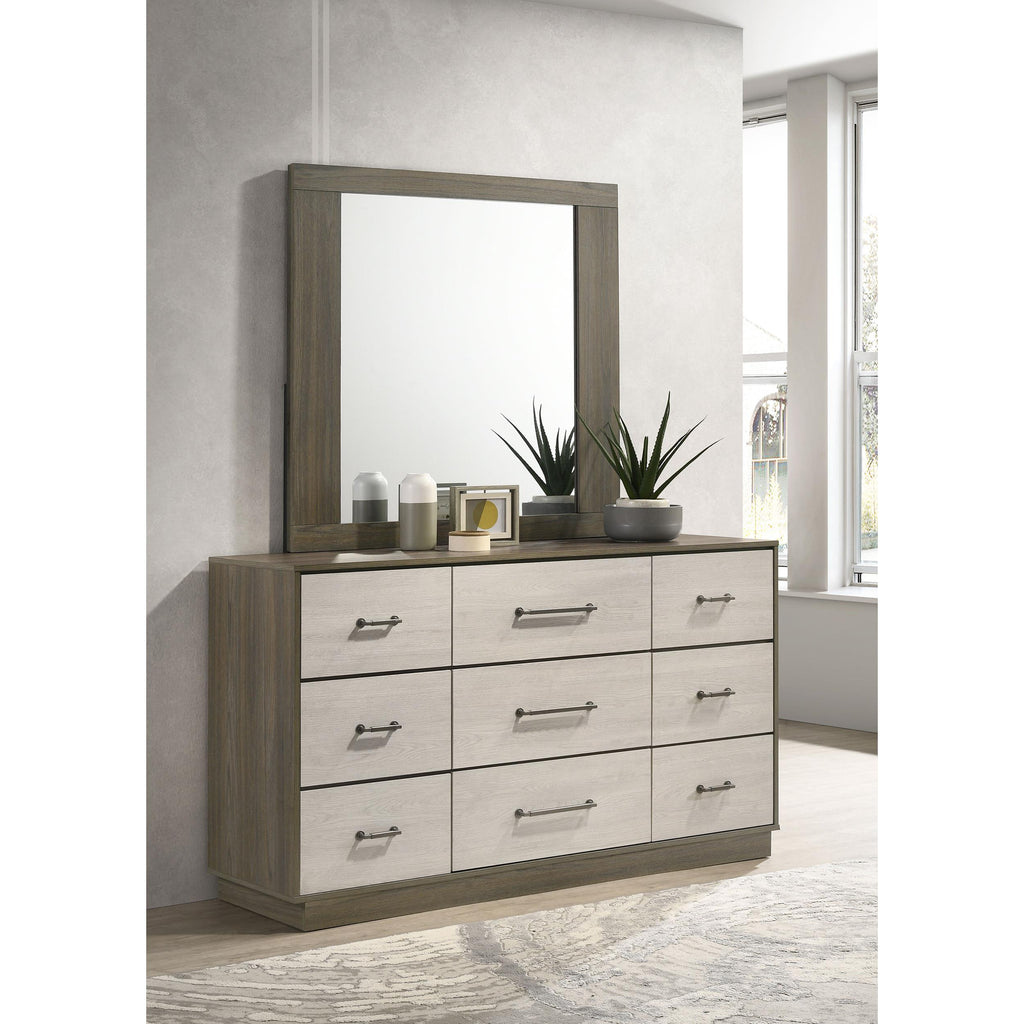 • Dresser and mirror set with a contemporary two-tone melamine design