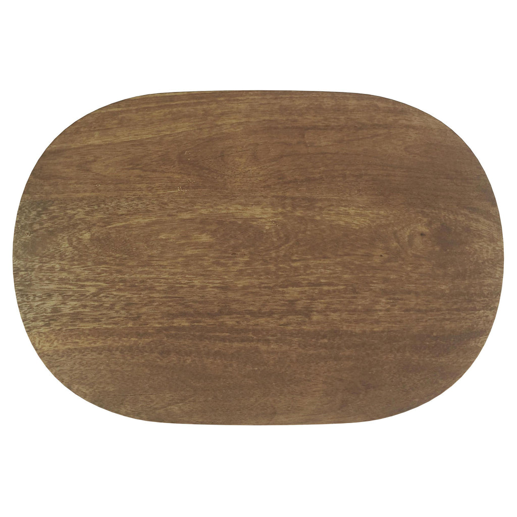 Beautiful mango wood construction sets a refined but organic tone for the sculpted silhouette of a modern end table. It's designed to make an impact in surrounding decor in your living room, entry, or den. This table boasts a solid rectangular support with an L-shaped leg that adds depth and visual texture to surrounding decor. Its rounded rectangular tabletop is spacious and sturdy, creating the perfect place for refreshments, a lamp, or a decorative piece that brings personality to your space. The table is complete with a warm brown finish that highlights the beautiful dimensionality and grain details of the wood.