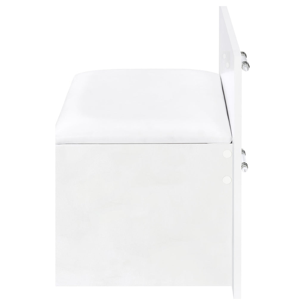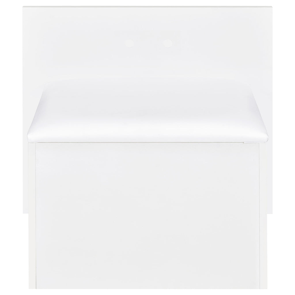 Transform your daily routine with this modern vanity desk, expertly merging sleek aesthetics and smart organization. Its high gloss finish, paired with clear acrylic handles, imparts a bright, contemporary look. Two smooth-gliding drawers and a cabinet with a framed fluted panel and adjustable shelf provide ample storage for cosmetics and styling tools. A tempered glass top keeps the surface pristine, while the integrated LED mirror, activated by a touch switch, ensures flawless lighting for every occasion.