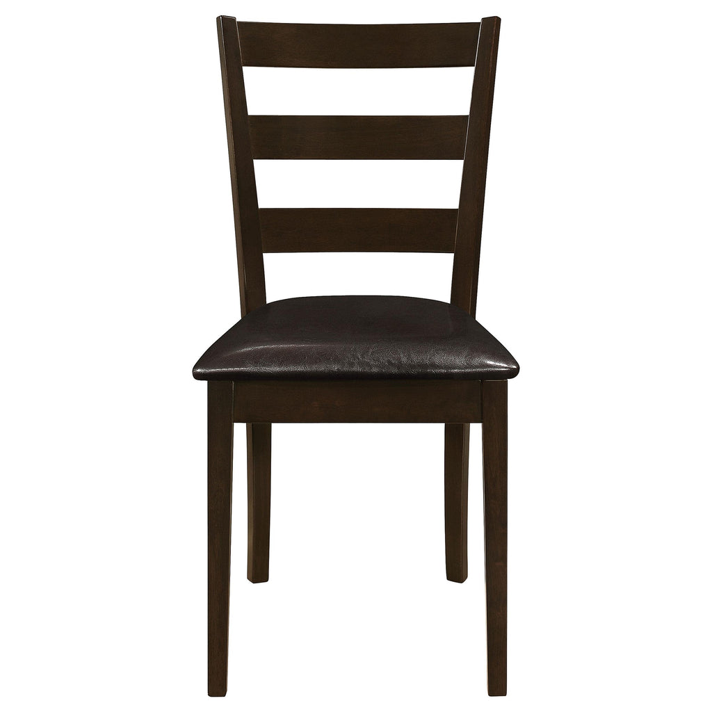 Be it everyday meals with the family or casually catching up with friends over wine in the dining room, this five-piece set is the perfect fit for your home. Crafted from Asian tropical hardwood and Okume veneer, the rectangular table boasts straight clean lines and bold tapered legs. Three chairs with comfy padded brown leatherette seats bolster the table, while the leatherette bench adds functionality. The classic details also add an element of tradition to any occasion. This ensemble is sure to be a foundation of fond memories.