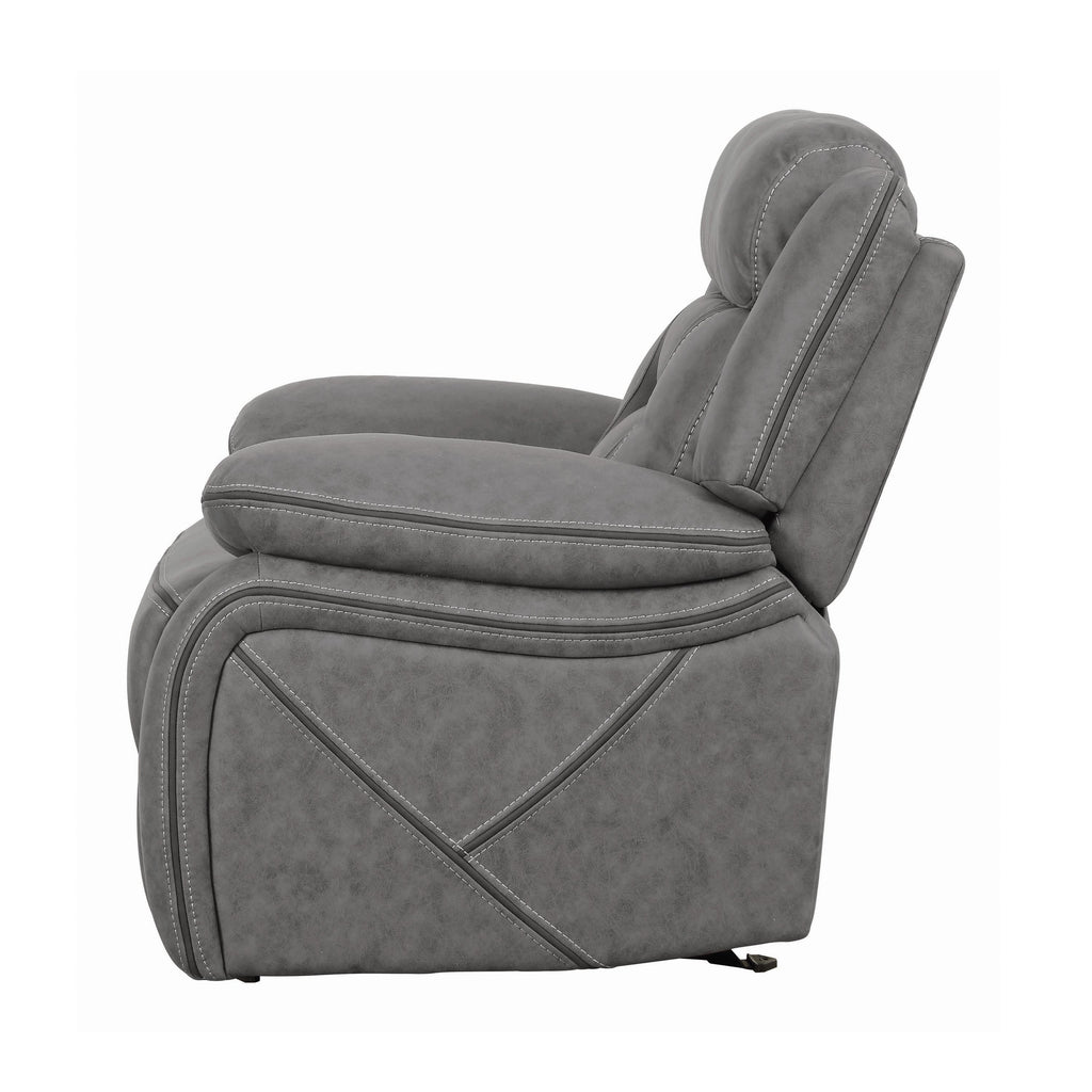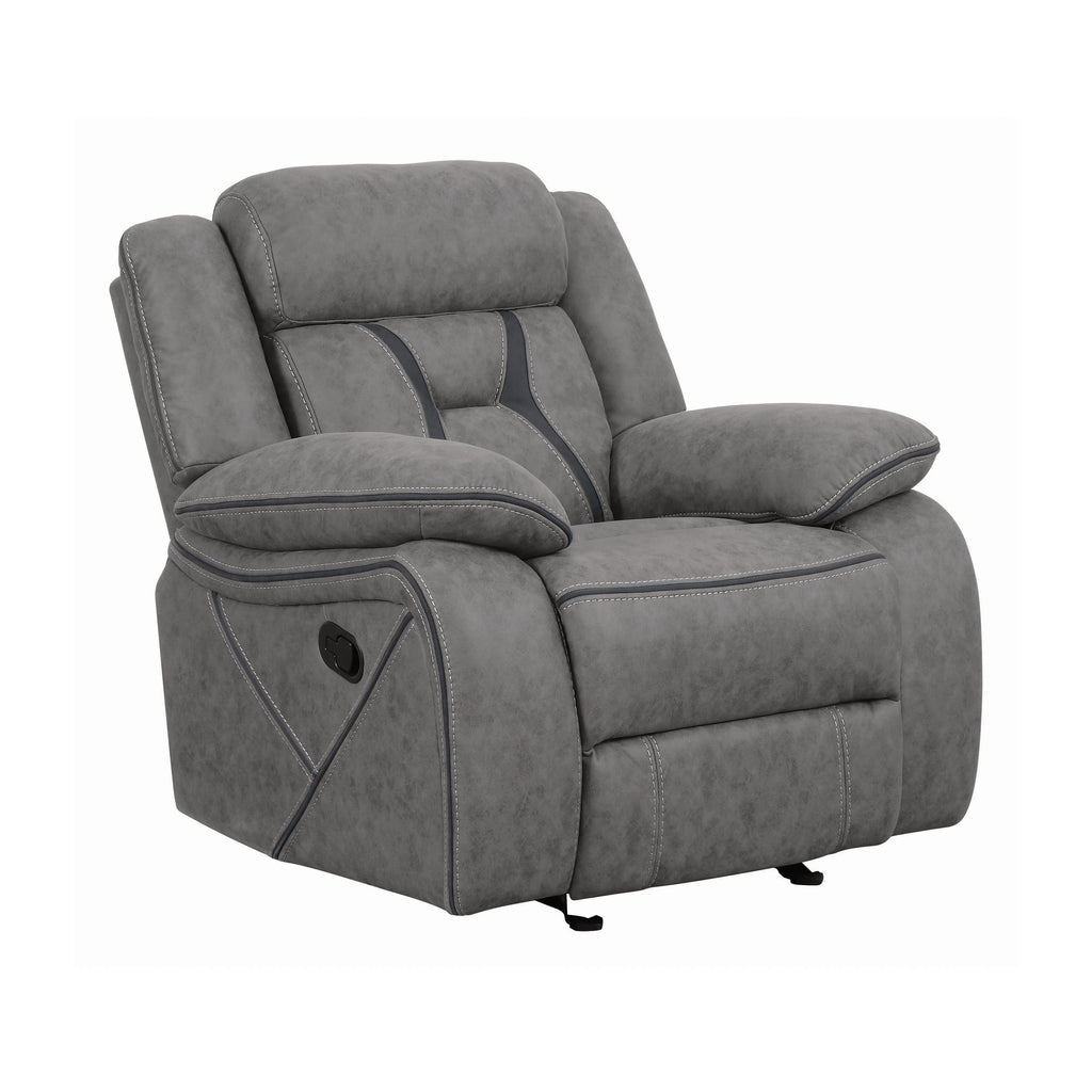 Crafted for comfort and durability, this glider recliner is an instant living room upgrade. Available in multiple colors, it offers a variety of attractive options to match your decor. The thick, plush padding of its seat, back, and armrests offers exquisite softness and comfortable support. Its soft upholstery boasts a subtle, stitched design, giving it a stylish look. This recliner is crafted from quality materials for the ultimate lounging experience.