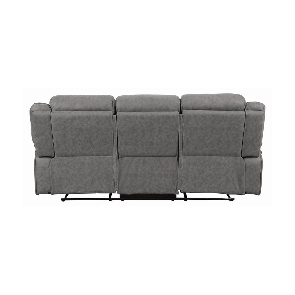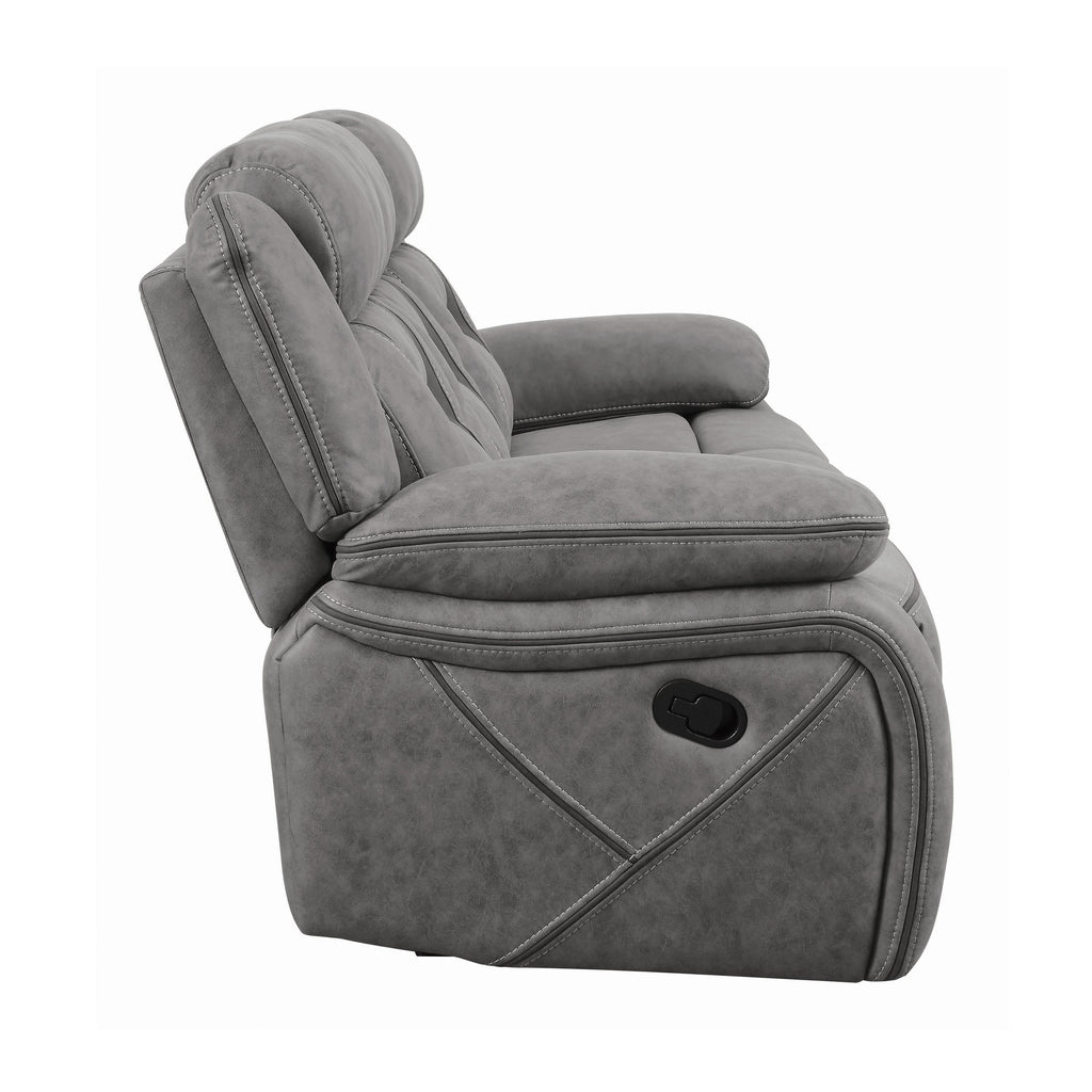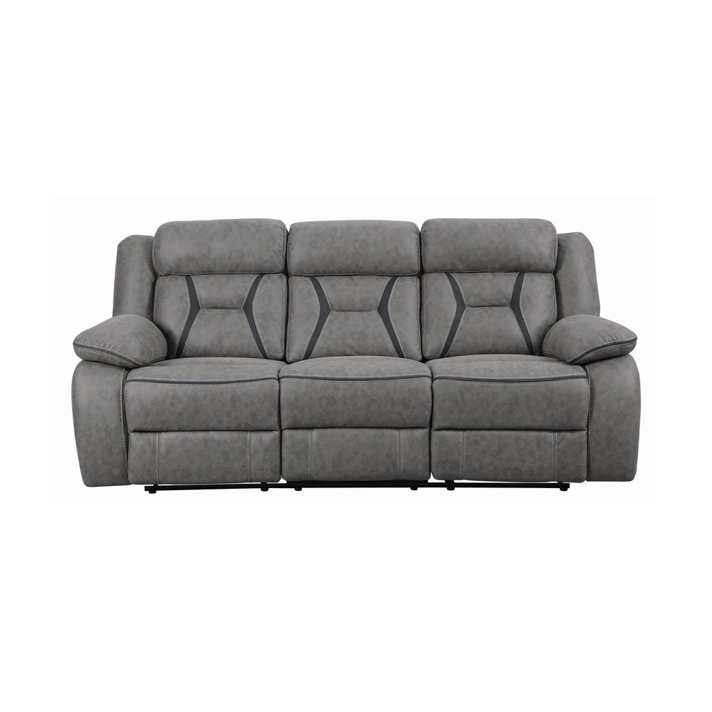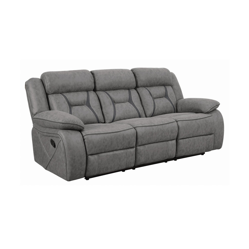 Relax, recline, and revel in the luxurious comfort of this motion sofa. With a chic and modern design, it's ideal for a contemporary living room. Its upholstery boasts a soft, smooth texture that feels lovely against the skin. Its plush seats and thick, padded headrests offer a cozy foundation to rest and relax. Complete with striking, stitched accents, it lends an inviting element of style to any modern home.