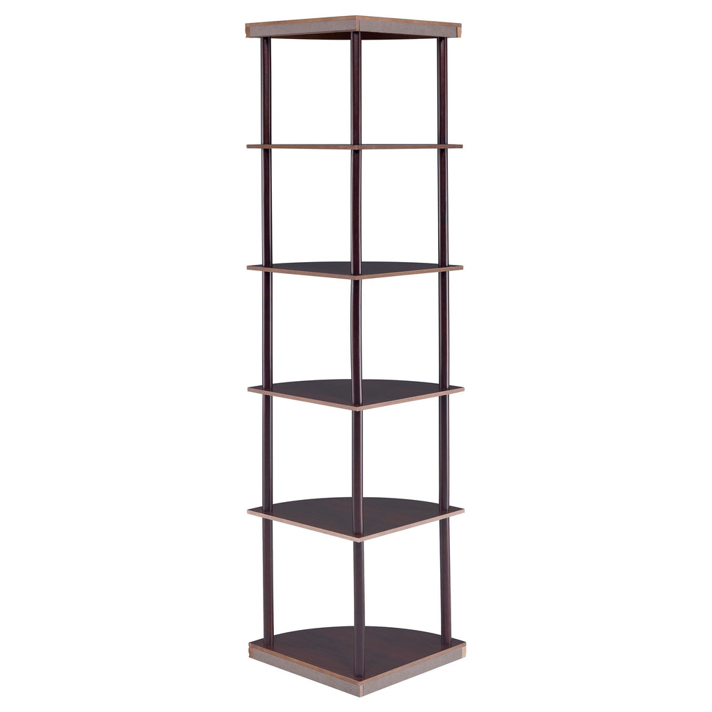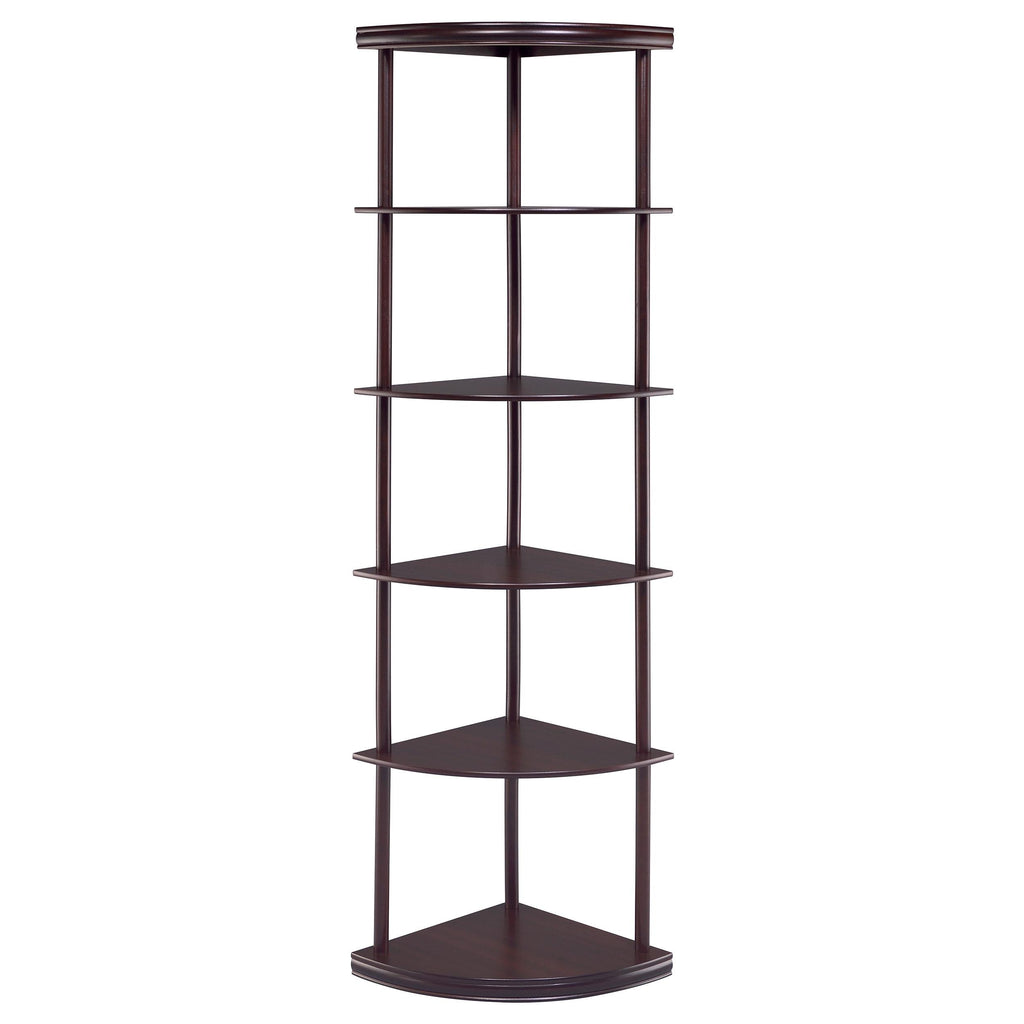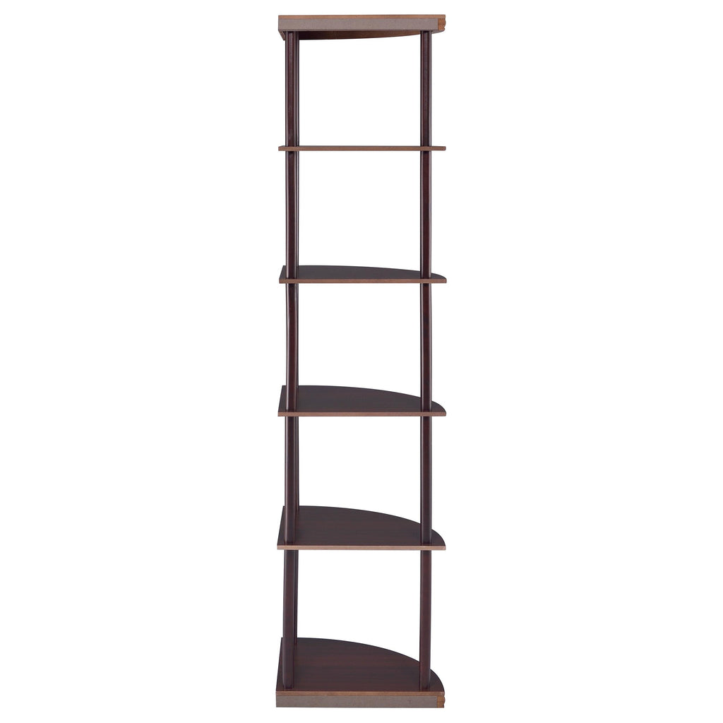 Classy and compact, this four-tier bookcase is a convenient option for a small space. It's designed to fit easily into a corner for space-saving convenience. Made from rubberwood and other high-quality materials, it provides a safe, sturdy spot to display books and keepsakes. A warm, rich cappuccino finish adds elegance and depth. Whether placed in a bedroom, den, or office, this bookcase is sure to enhance any room.