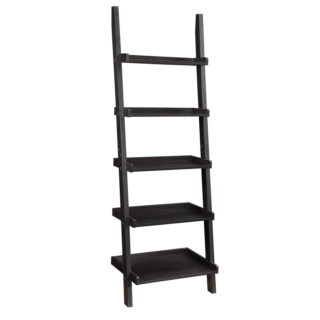 Infuse charm and personality in a transitional space. This tasteful ladder bookcase takes advantage of angles and linear shapes to make room for display. Books, decor, and potted greenery take their rightful place on five spacious shelves stacked and arranged at an angle. A deep cappuccino finish looks delightful and enticing as it provides palette versatility. Spruce up a bedroom or a library space with this fun ladder bookcase.